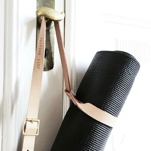Bærestrop til yogamåtte, naturfarvet læder og messingdetaljer