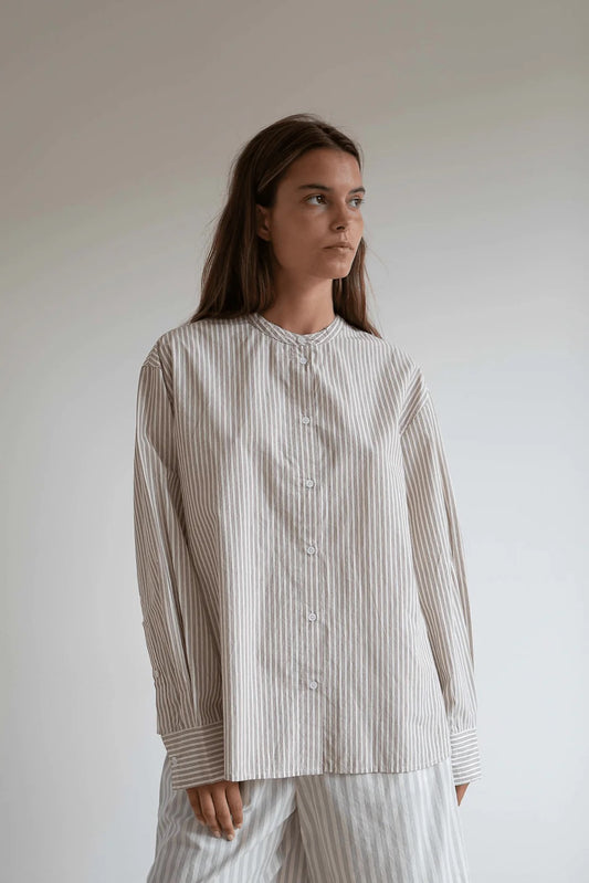 ISOLDE SKJORTE, BROWN BEIGE STRIPE - STUDIO FEDER