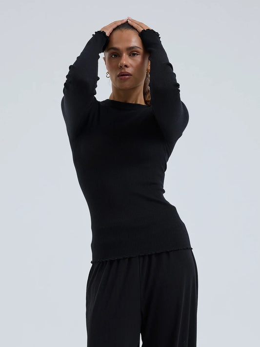 Wooly Long Sleeve, Merinould/Silke (Sort)