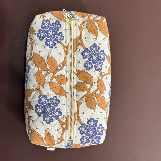 Toilettaske/makeuppung/penalhus, orange/blå blomst- Vita Vass