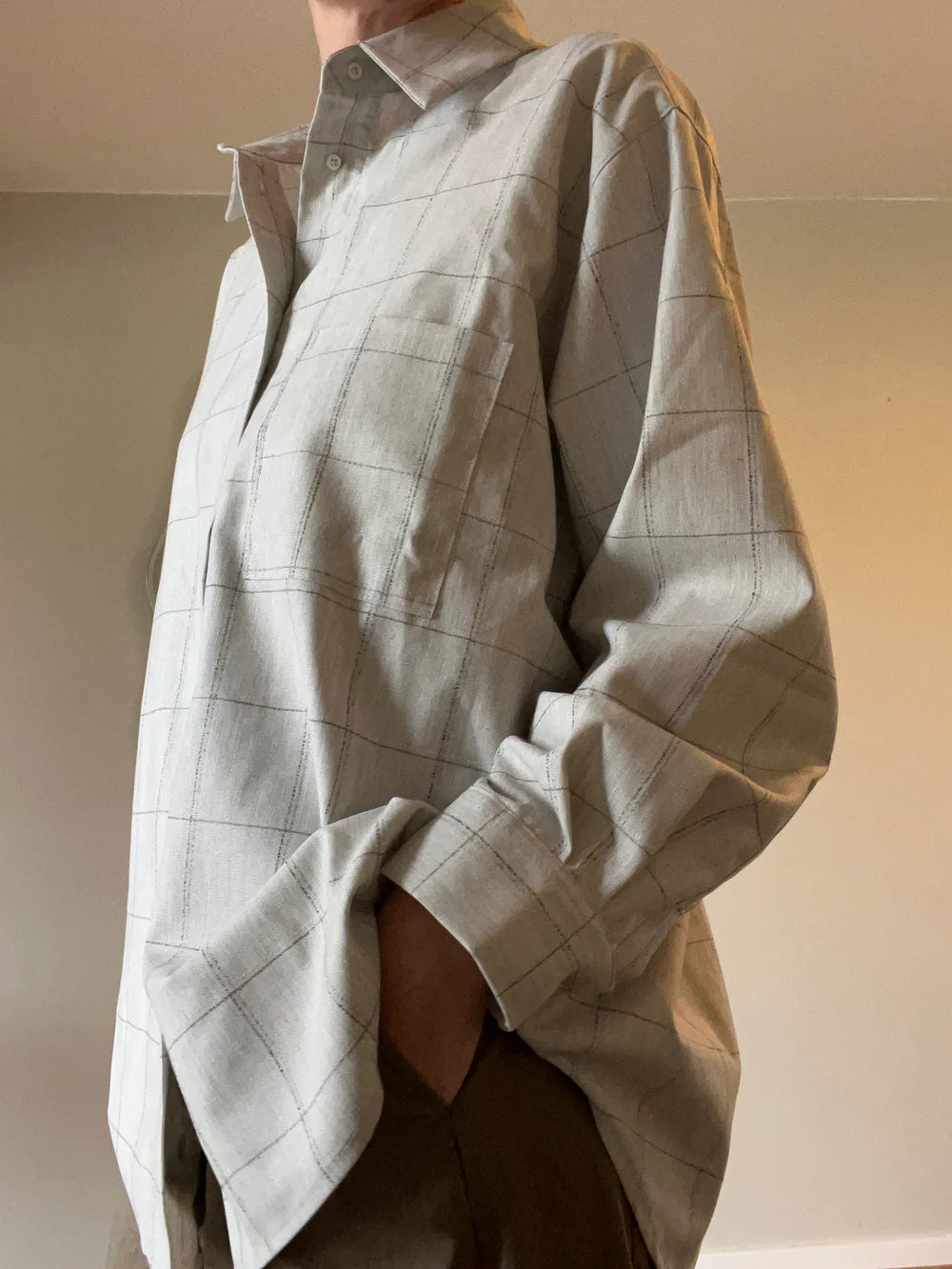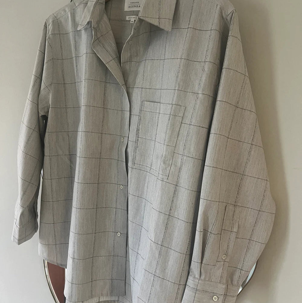 Alva-skjorten er et must-have til hverdagsbrug. Denne version er lavet i en mellemvægtig uldblandingskvalitet med et blødt ternmønster. Den har fuld stolpelukning foran og en buet kant. En behagelig og oversize pasform.