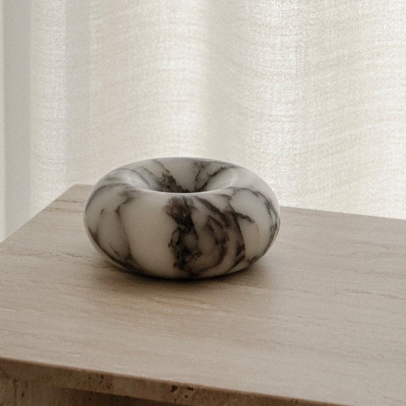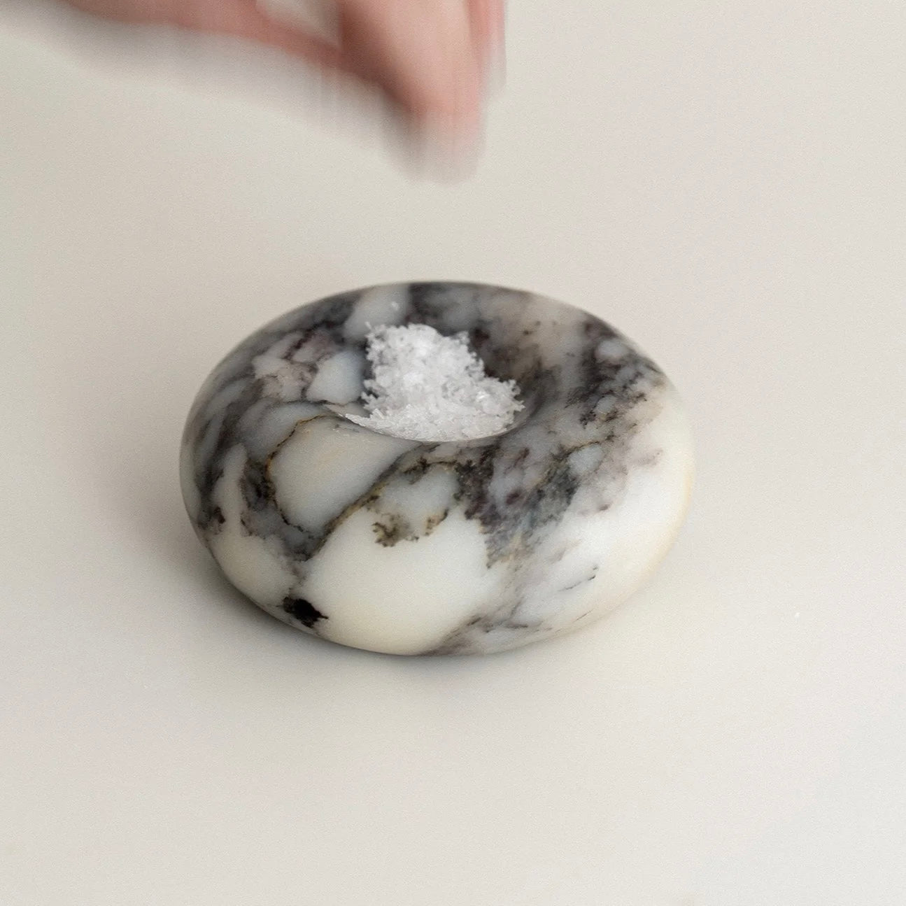 Cosmos svæver i grænselandet mellem brugsgenstand og kunstobjekt. Det runde buttede formsprog sætter marmor i et nyt blødere lys.