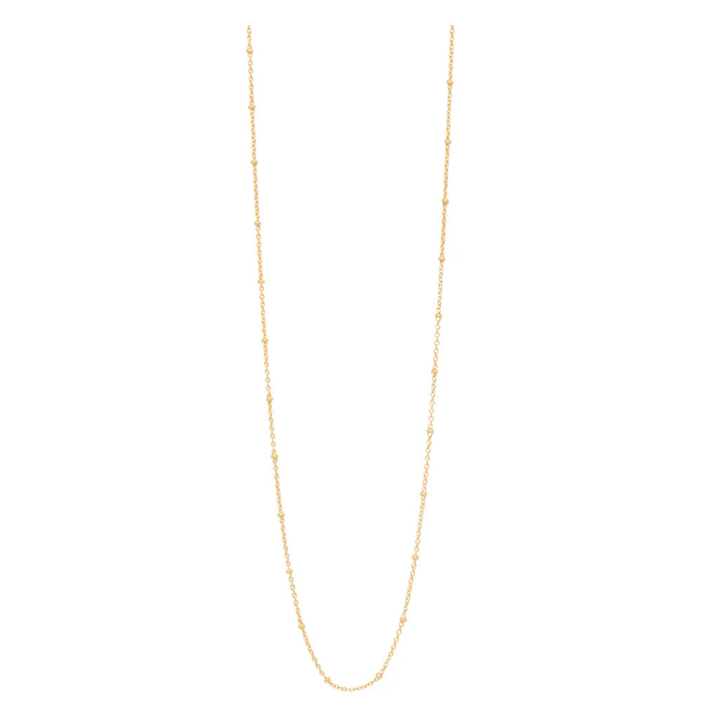Dili halskæde er helt tynd og fin med et lille kuglemønster. Den er 48,0 cm lang og kan forkortes til 46,0 cm. Kæden er belagt med mat guld 18 K.