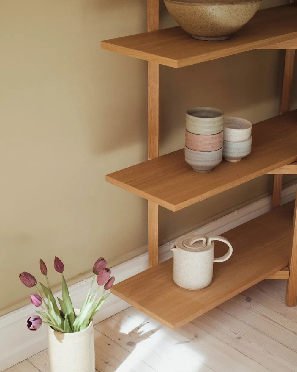 EA er en serie hånddrejede stentøjskeramiker opkaldt efter vores yngste datter. Serien har et geometrisk formsprog og en skarp kantprofil. Glasurerne har en blød og mat tekstur, der giver overfladen en sanselig følelse. Alt sammen blandet af naturlige materialer.