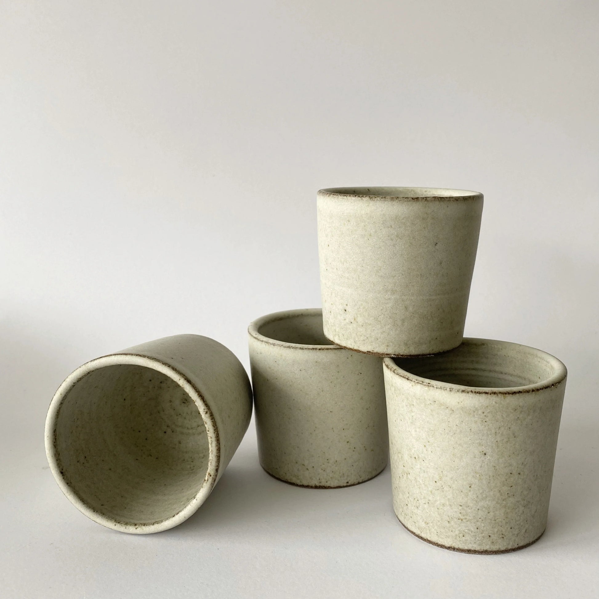 Håndlavet af grå stentøjsler. Designet til daglig brug. Ca. 6 cm høj x 6,5 cm bred.