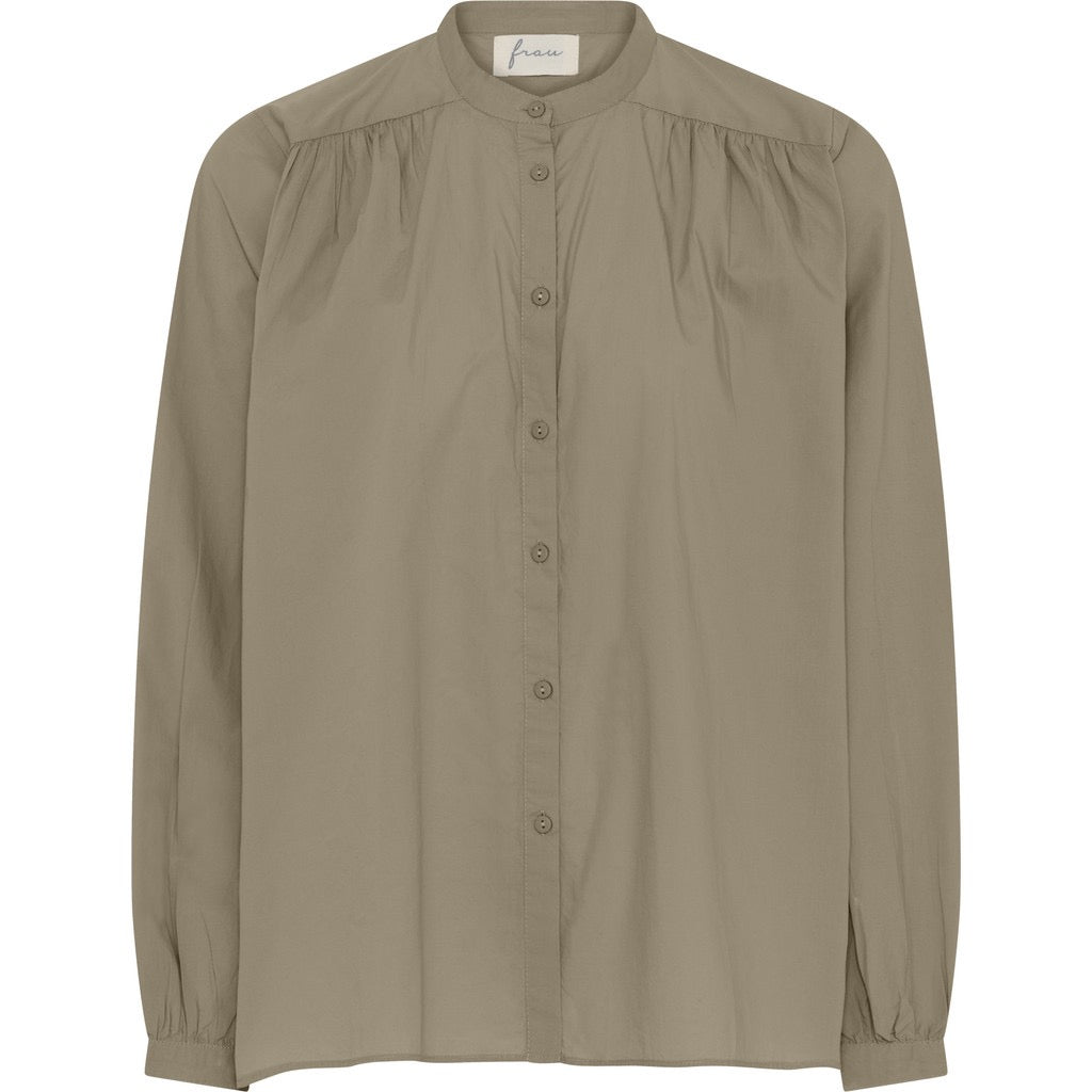 Florence skjorte har lange ærmer, kinakrave og feminine rynker ved skulderskæringen og på ryggen. Ved ærmerne har den også lidt feminint rynk.