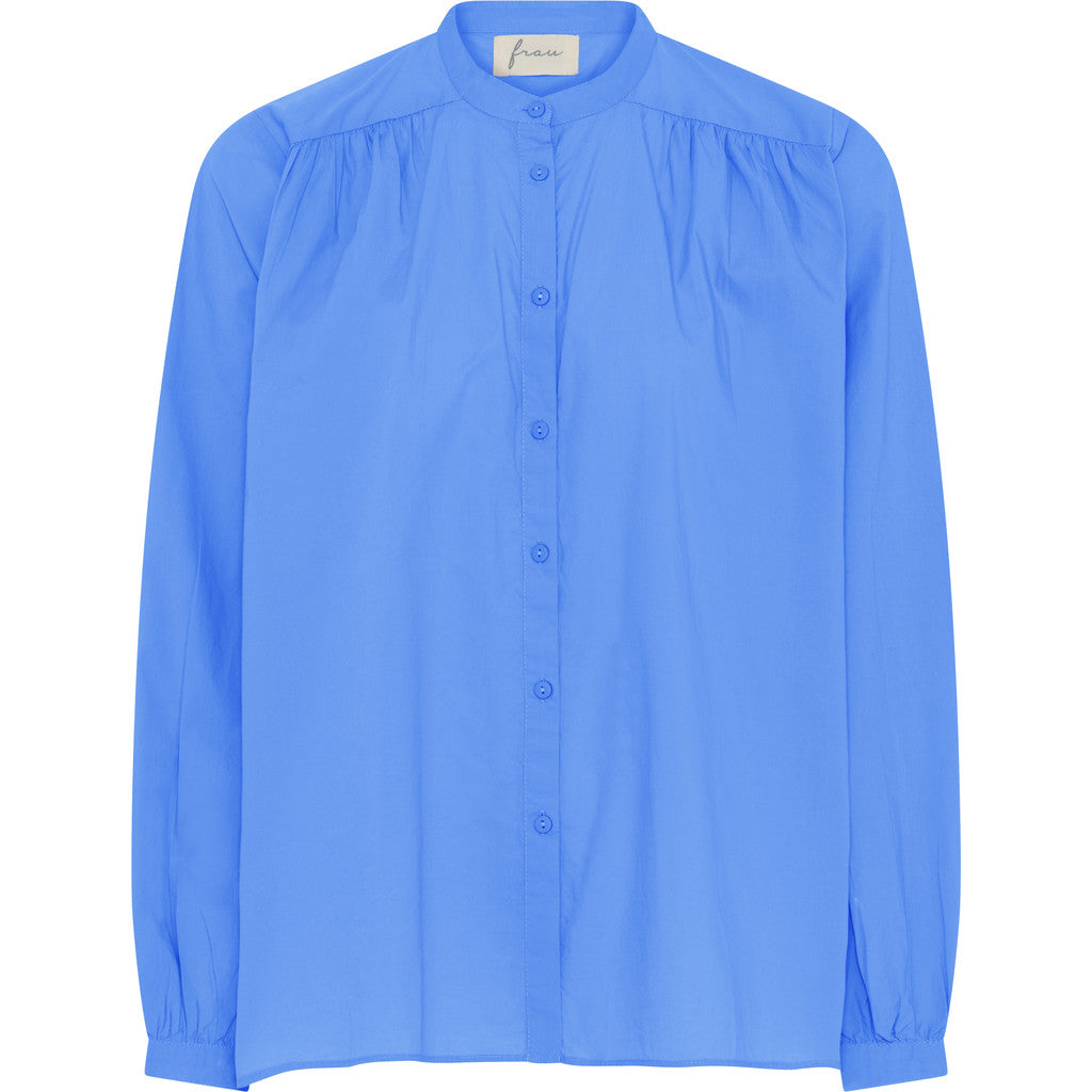 Florence skjorte har lange ærmer, kinakrave og feminine rynker ved skulderskæringen og på ryggen. Ved ærmerne har den også lidt feminint rynk.