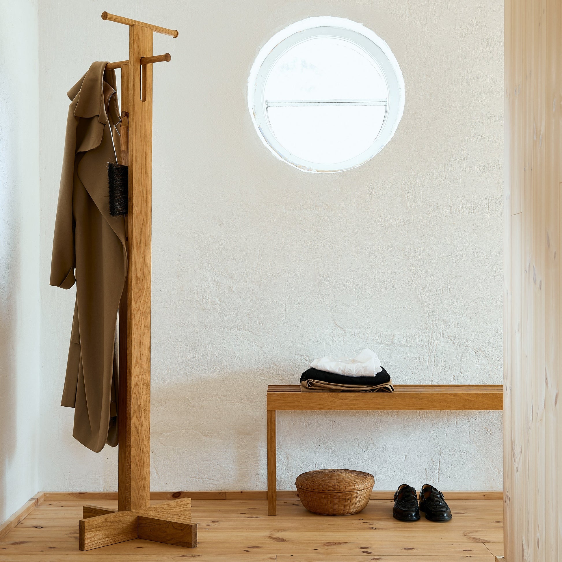 En tynd, smart og pladsbesparende frakkestativ med to hovedsøjler og sammenhængende grene, som skaber en udsøgt detaljeret visuel effekt. Knageholderen er fritstående, nem at folde sammen og opbevare. Hvert frakkestativ inkluderer yderligere fire kroge for at give brugerdefinerbar funktionalitet langs søjlerne.
