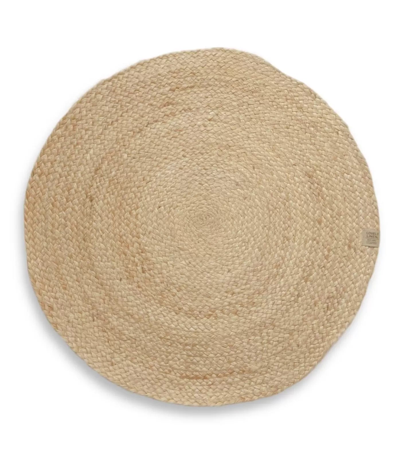 Lille rund dørmåtte vævet af fibrene fra juteplanten, som er forarbejdet til et blødt og fleksibelt garn, og som her fremstår i sin naturlige farve. Jute er slidstærkt, og er samtidig 100% biologisk nedbrydeligt, så det ikke belaster miljøet unødigt.