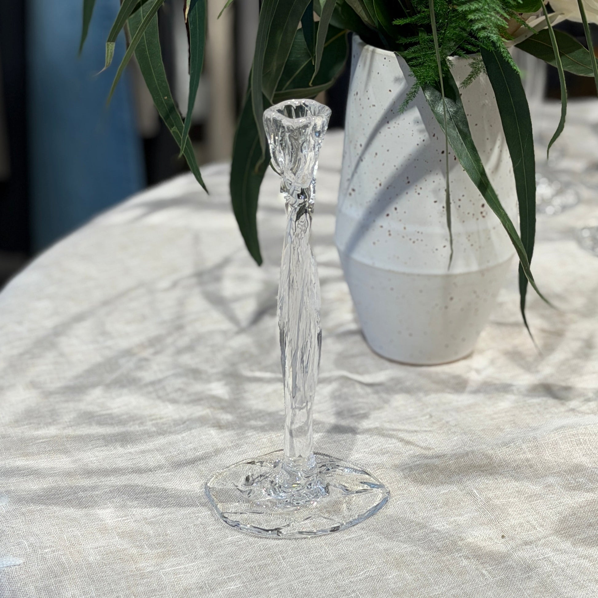 Fineste håndlavet lysestage af glaspuster Marie Breyen, som ses på billederne.