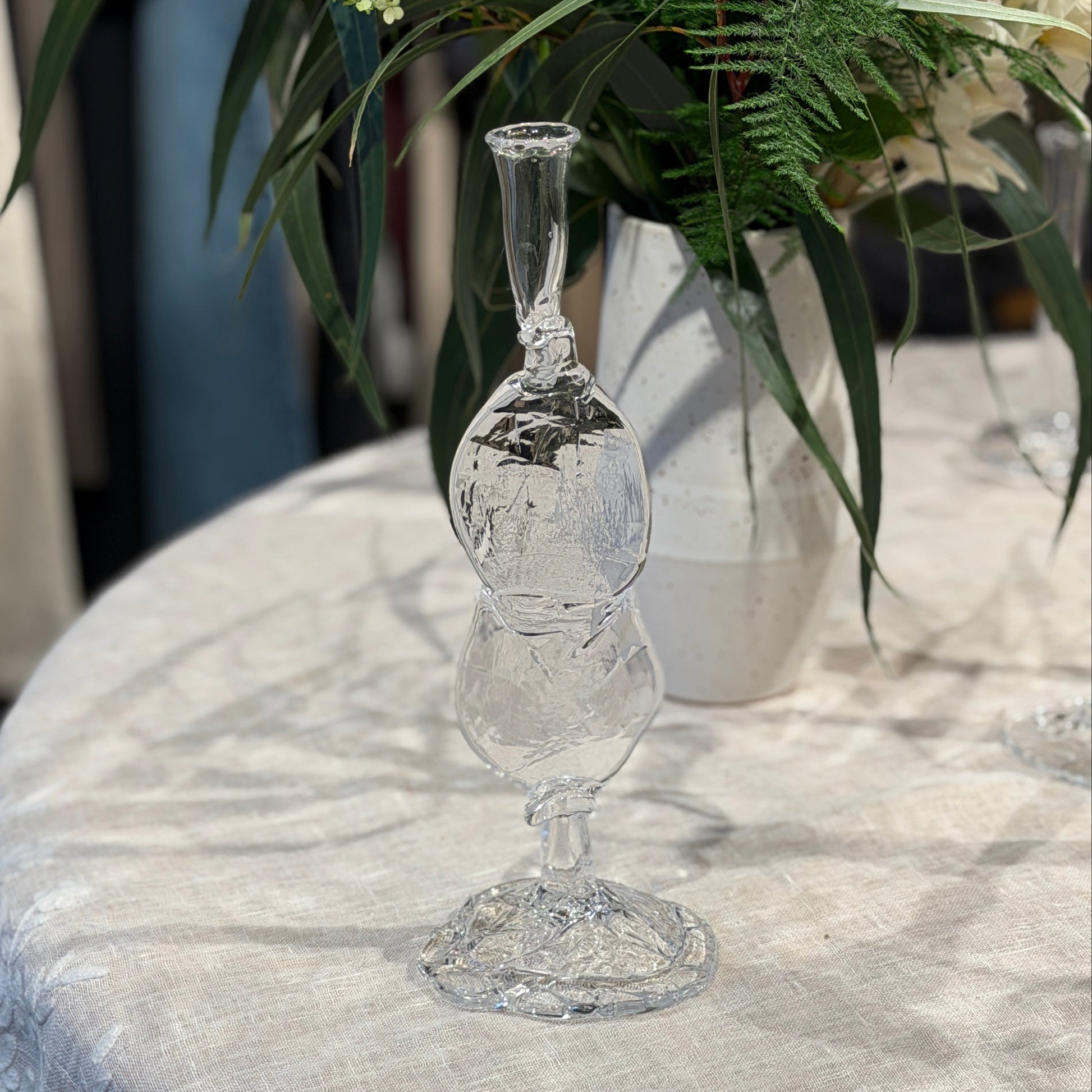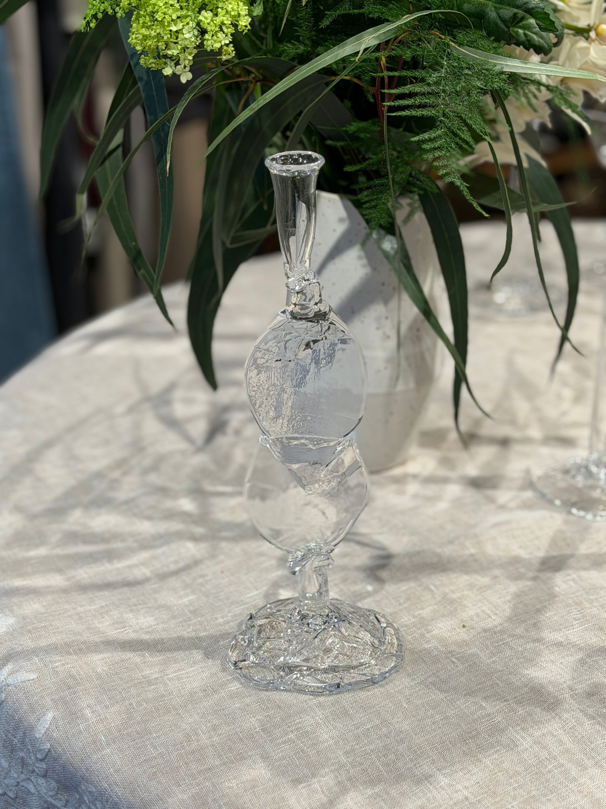 Fineste håndlavet lysestage af glaspuster Marie Breyen, som ses på billederne.