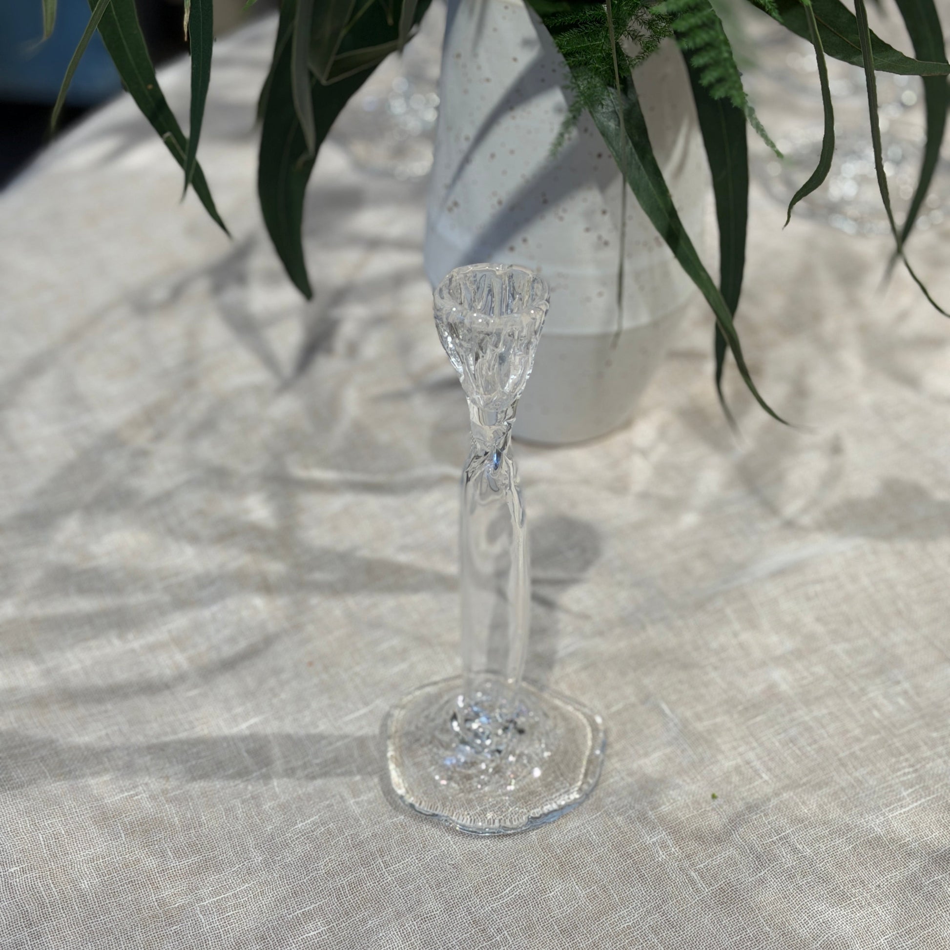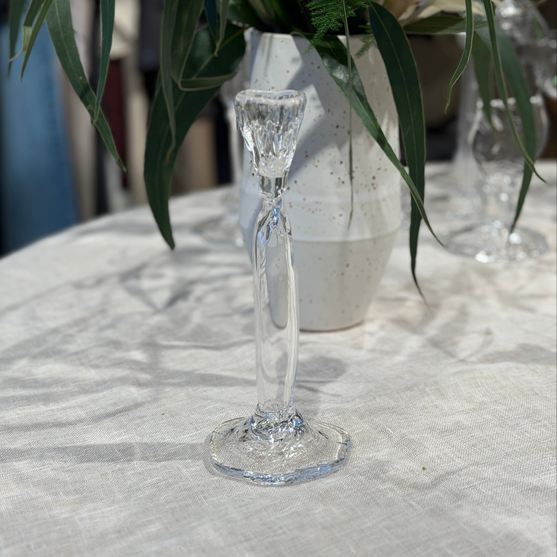 Fineste håndlavet lysestage af glaspuster Marie Breyen, som ses på billederne.