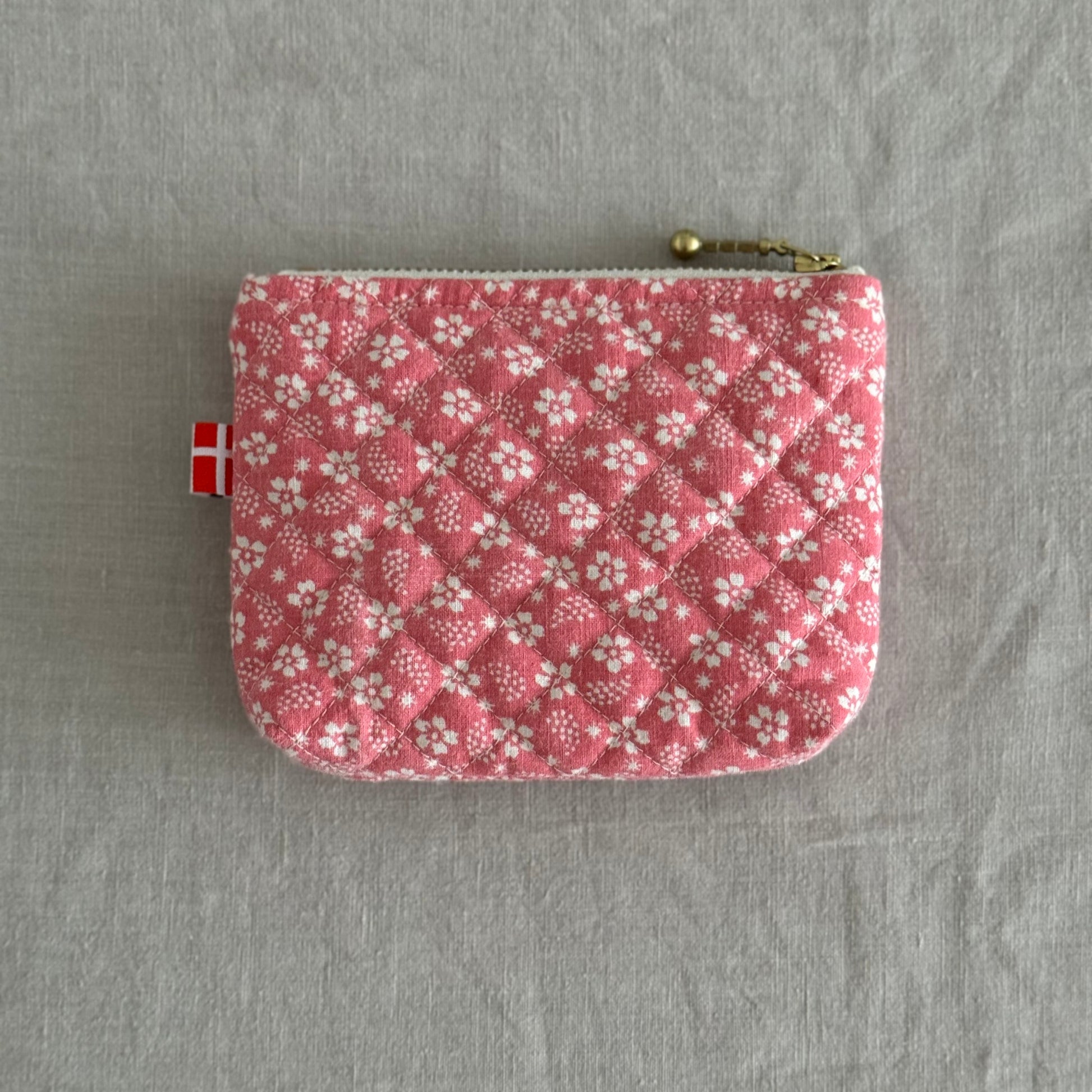Håndsyet pung i upcyklet stof, pink m. Hvid blomst - Vita Vass