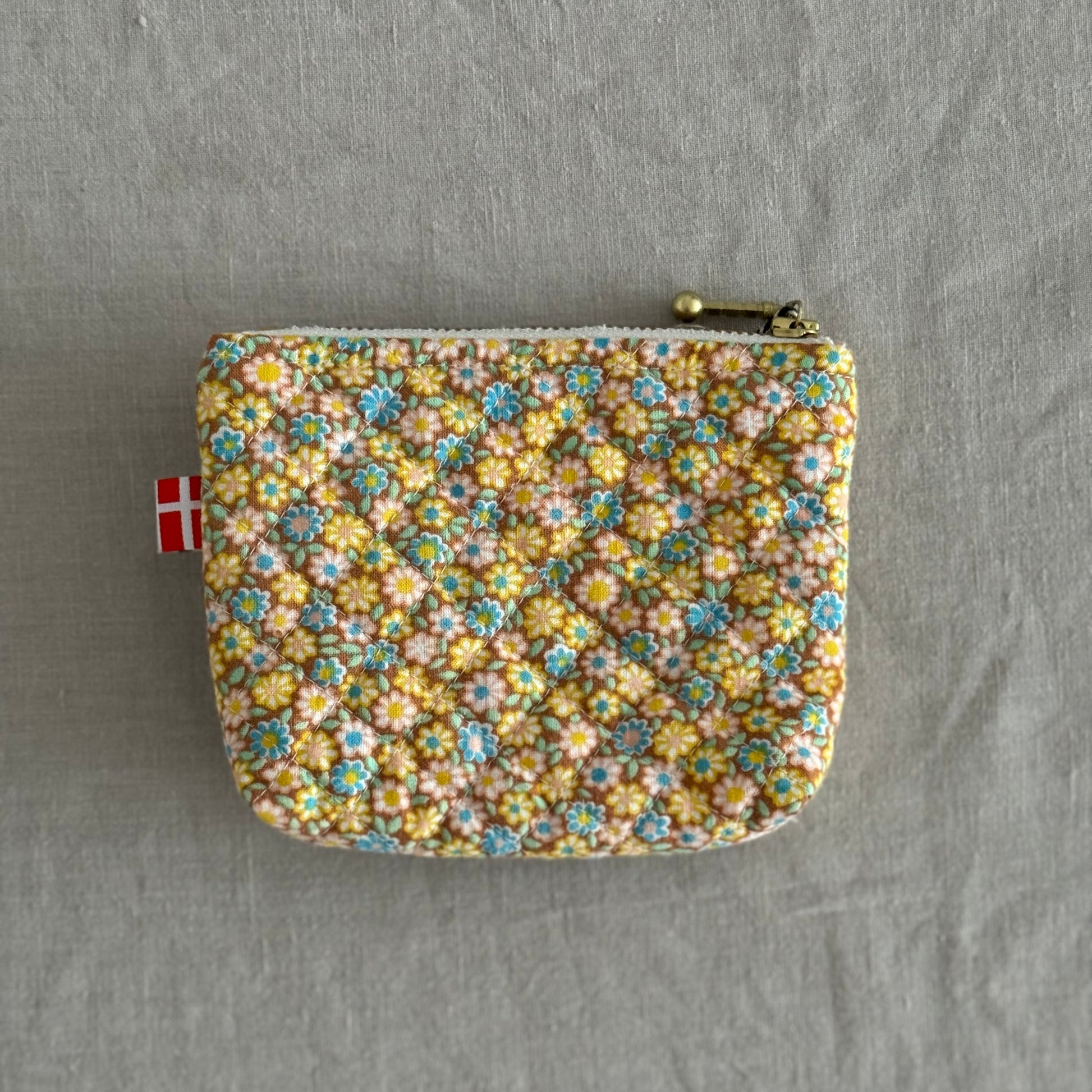 Håndsyet pung i upcyklet stof, Gul/blå blomst - Vita Vass