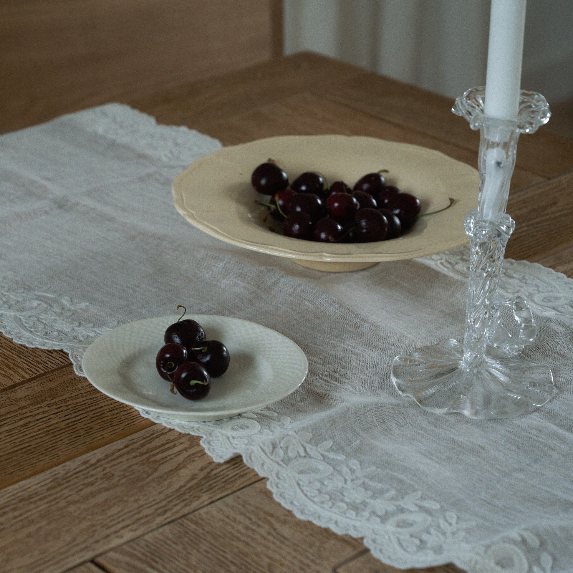 Det tidløse broderi giver et stilrent og sofistikeret udtryk, perfekt til både klassiske og moderne borde.
