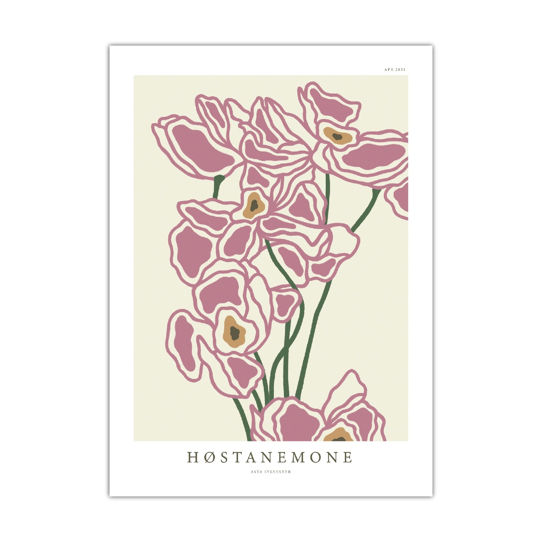 Denne plakat er inspireret af de smukke høstanemoner, som oprindeligt stammer fra Japan, men ofte ses i de danske haver.