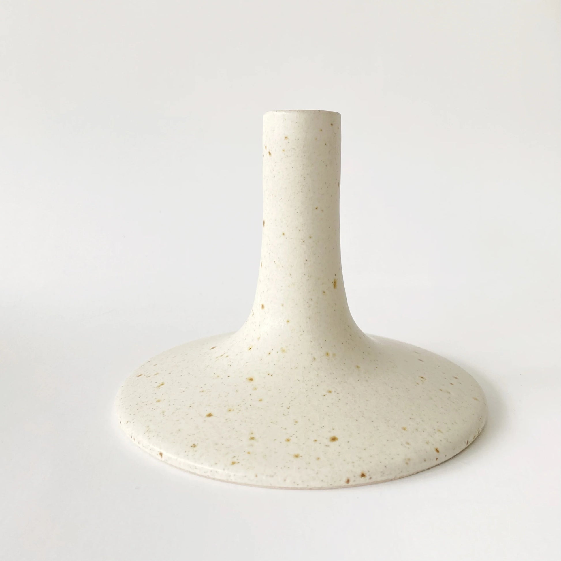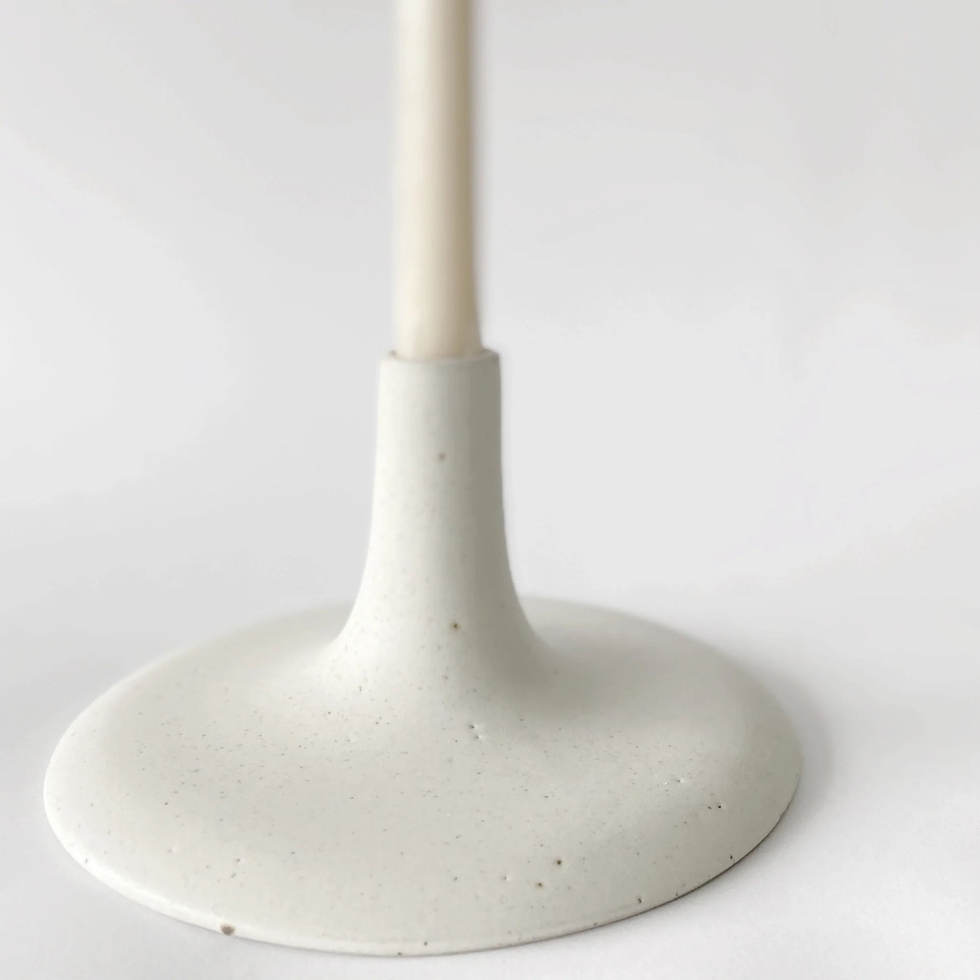 Lysestage håndlavet af hvidt stentøjsler. Ca. 10 cm høj x 13,5 cm bred. Til fx. alm. kronelys