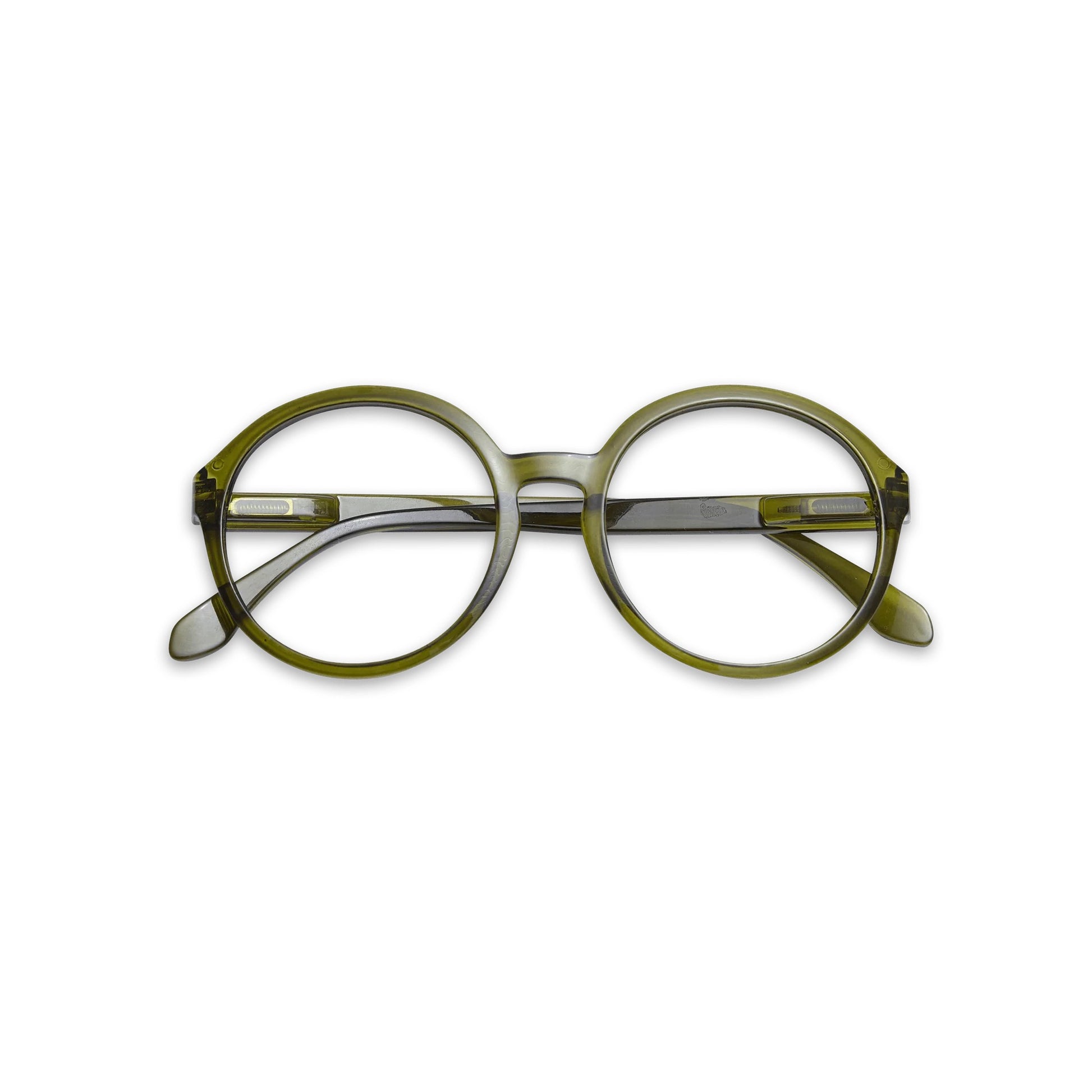 Store, runde læsebriller med grønt, halvtransparent stel. ’Diva’ fra Have A Look er store, elegante og utroligt lette og behagelige at have på med et let og stilrent stel. Det perfekte valg, hvis du er vild med briller, der fylder og giver karakter uden at være tunge og bombastiske. Designet passer især til firkantede, ovale og trekantede ansigtsformer.