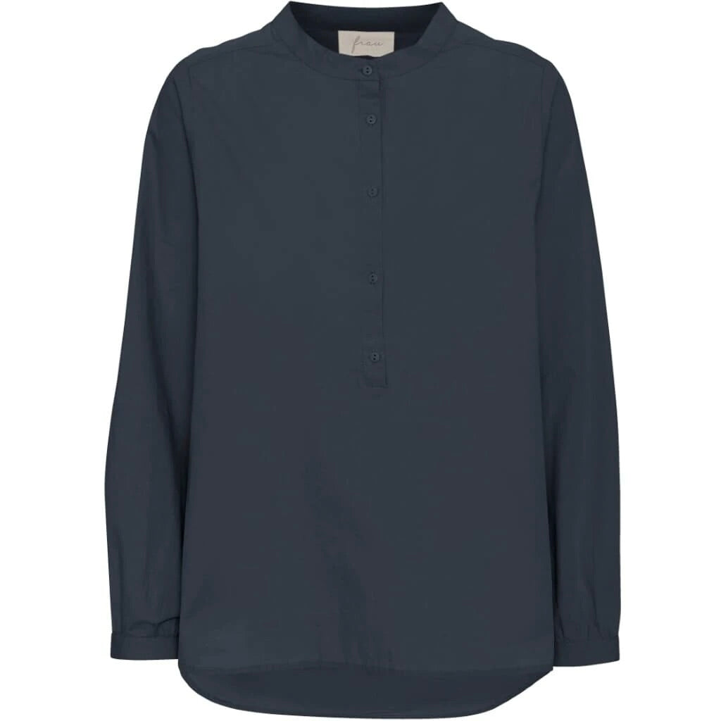 Langærmet skjorte i indian ink blue med stolpelukning fra det danske mærke Frau.