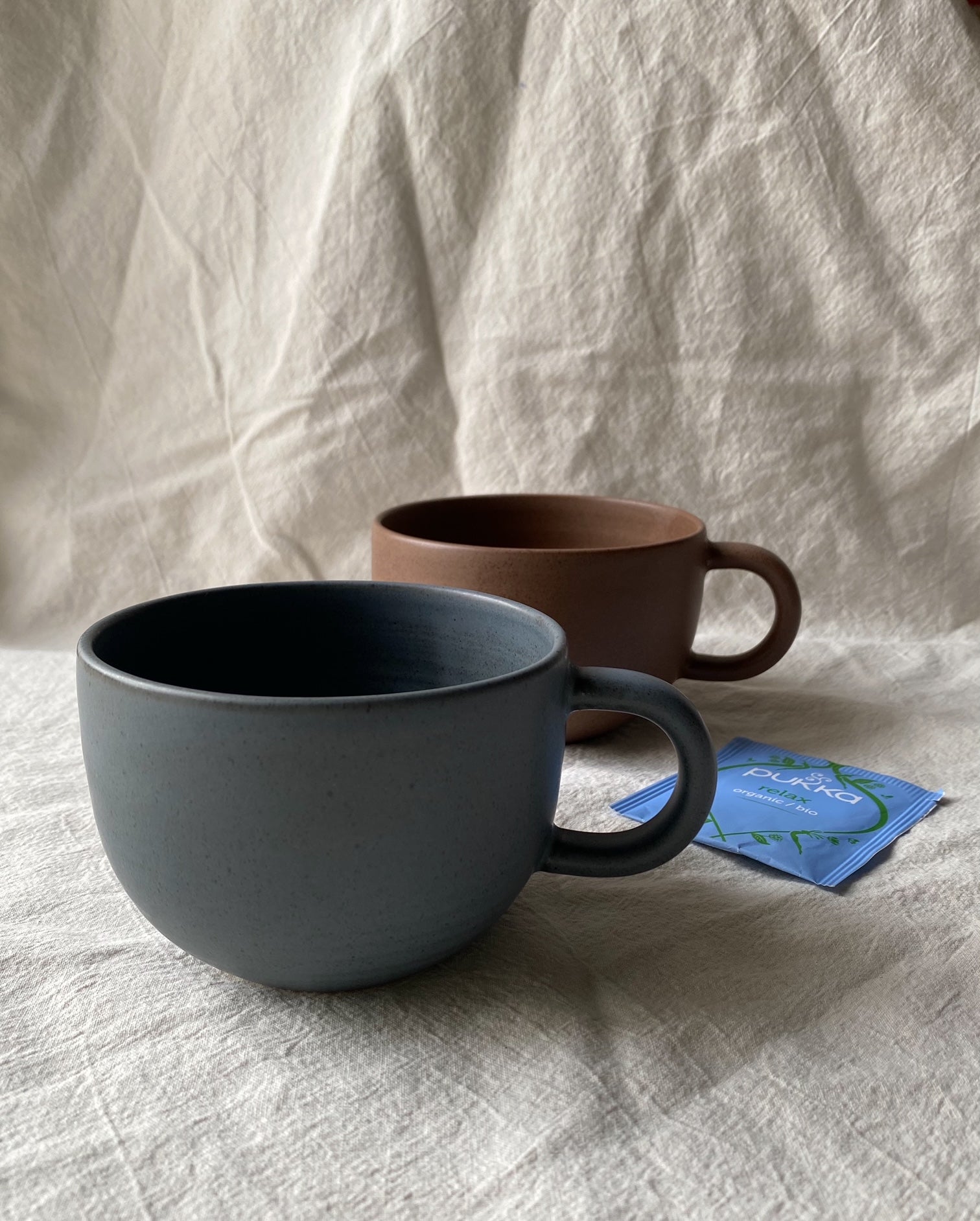 Den store Oktober kop en en større kop til dig der ønsker en god stor kop te eller kaffe. Derudover er den også helt perfekt til varm kakao med flødeskum. Oktober serien er med sine brune nuancer en hyldest til efteråret. Serien er lavet af stentøj og hånddrejet i Danmark. Modsat de to andre serier Oda og Toto er Oktober kendetegnet med sine runde former og afdæmpede udtryk. Den indbyder til rolige stunder og nærvær.