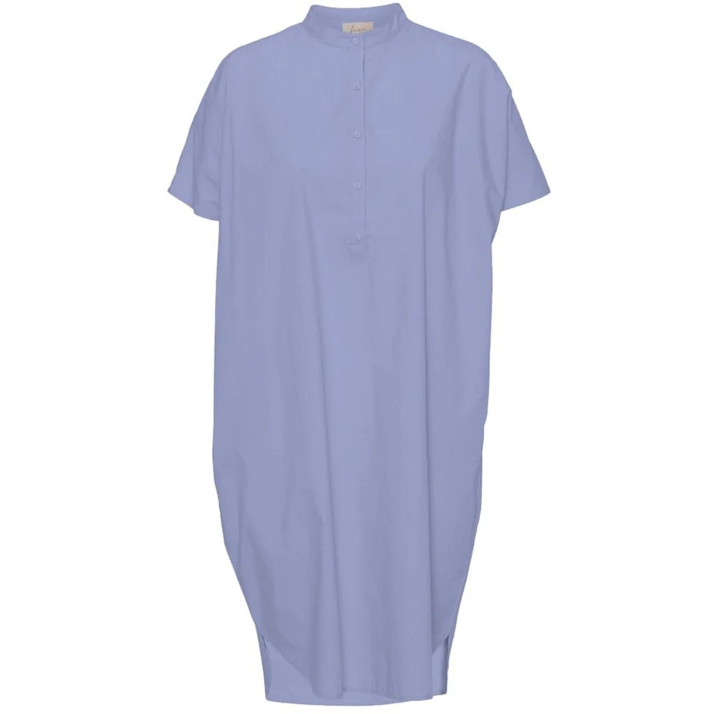 Skjortekjole med korte ærmer og kinakrave. Kjolen har sidelommer og stolpelukning.