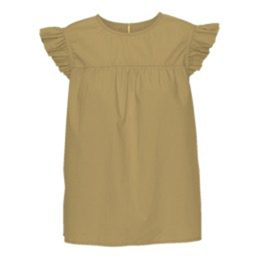 Ærmeløs top med flæser ved skuldrene, sød flæsedetalje over brystet og knaplukning bagpå.