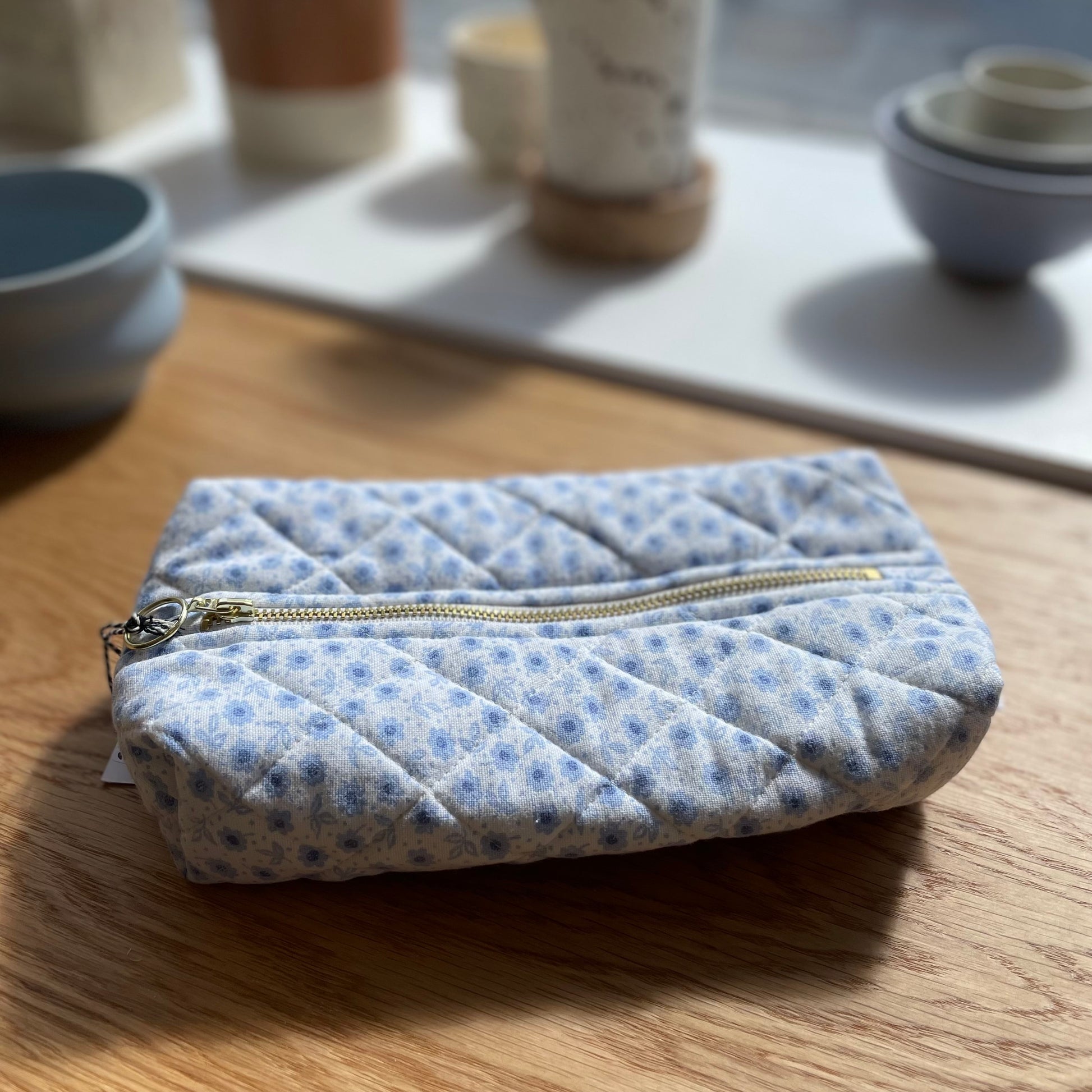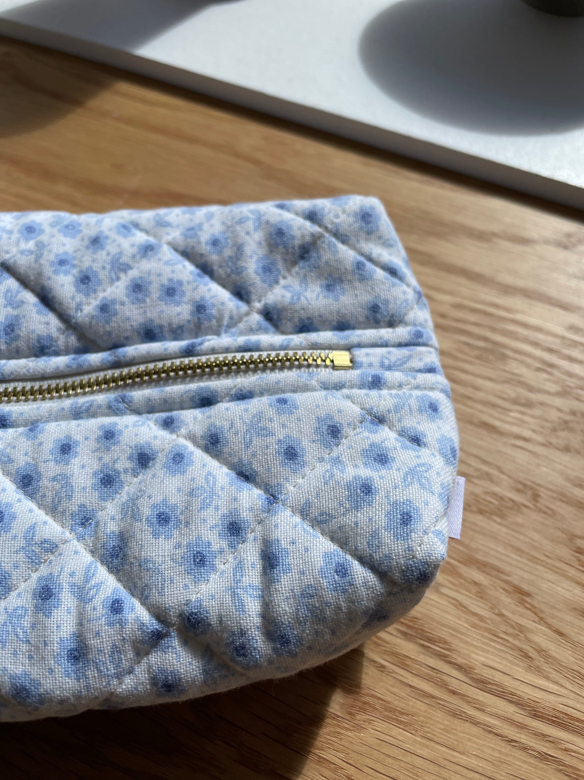 Toilettaske/makeuppung/penalhus, Hvid m. Lyseblå/blå blomst - Vita Vass