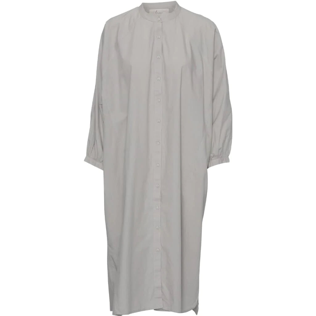 Skjortekjole med lange ballonærmer og kinakrave. Kjolen er gennemknappet.