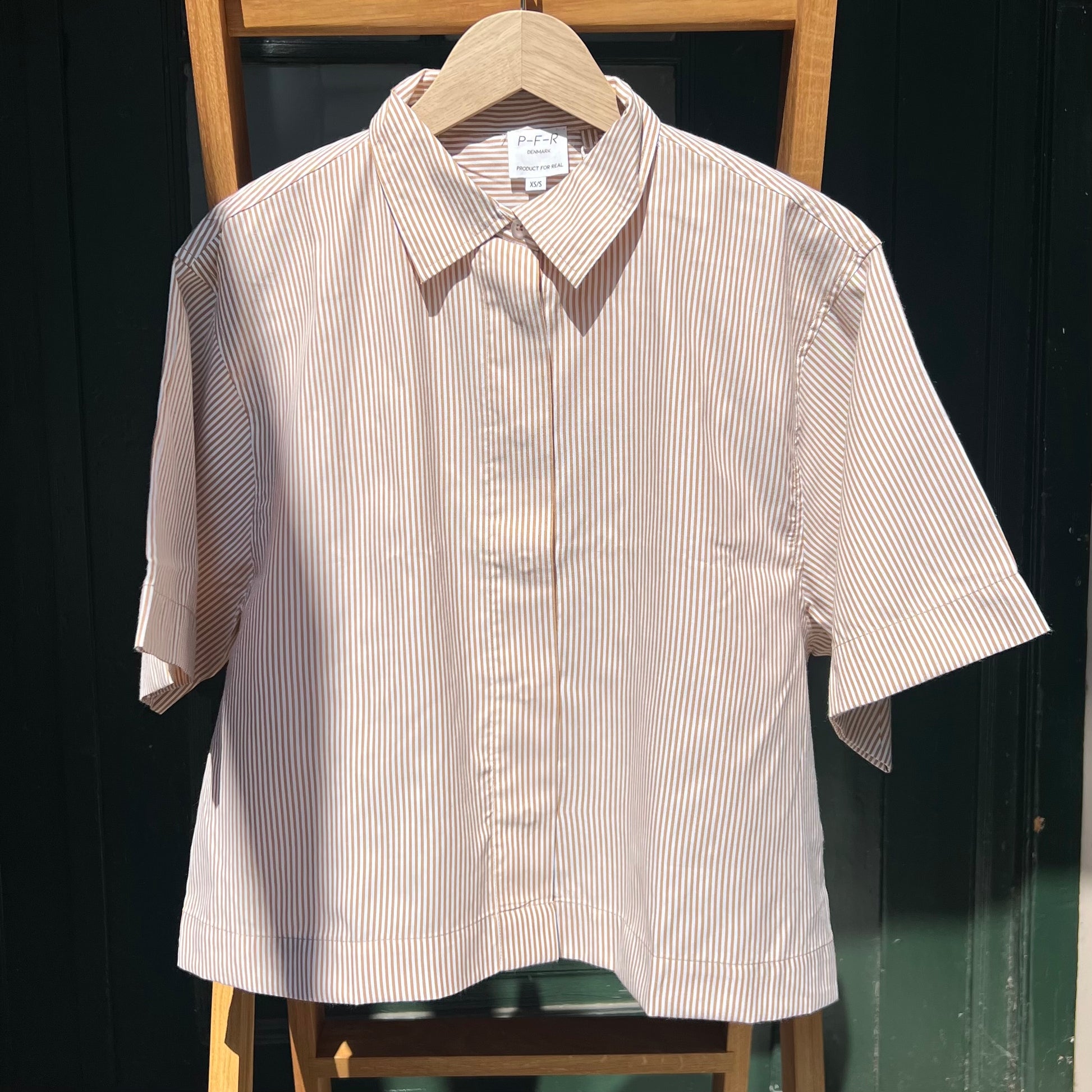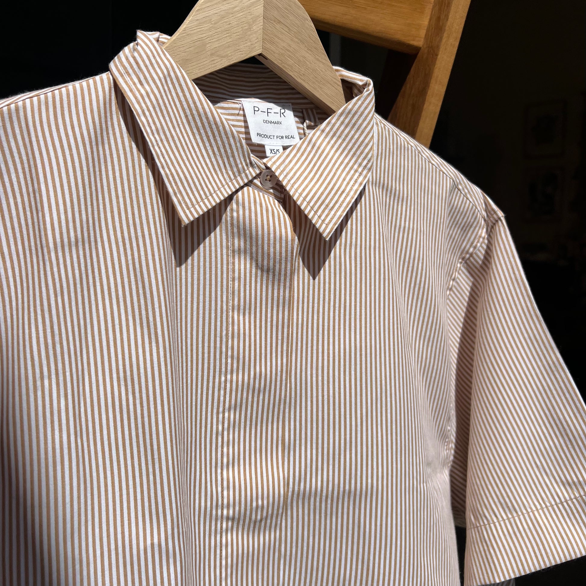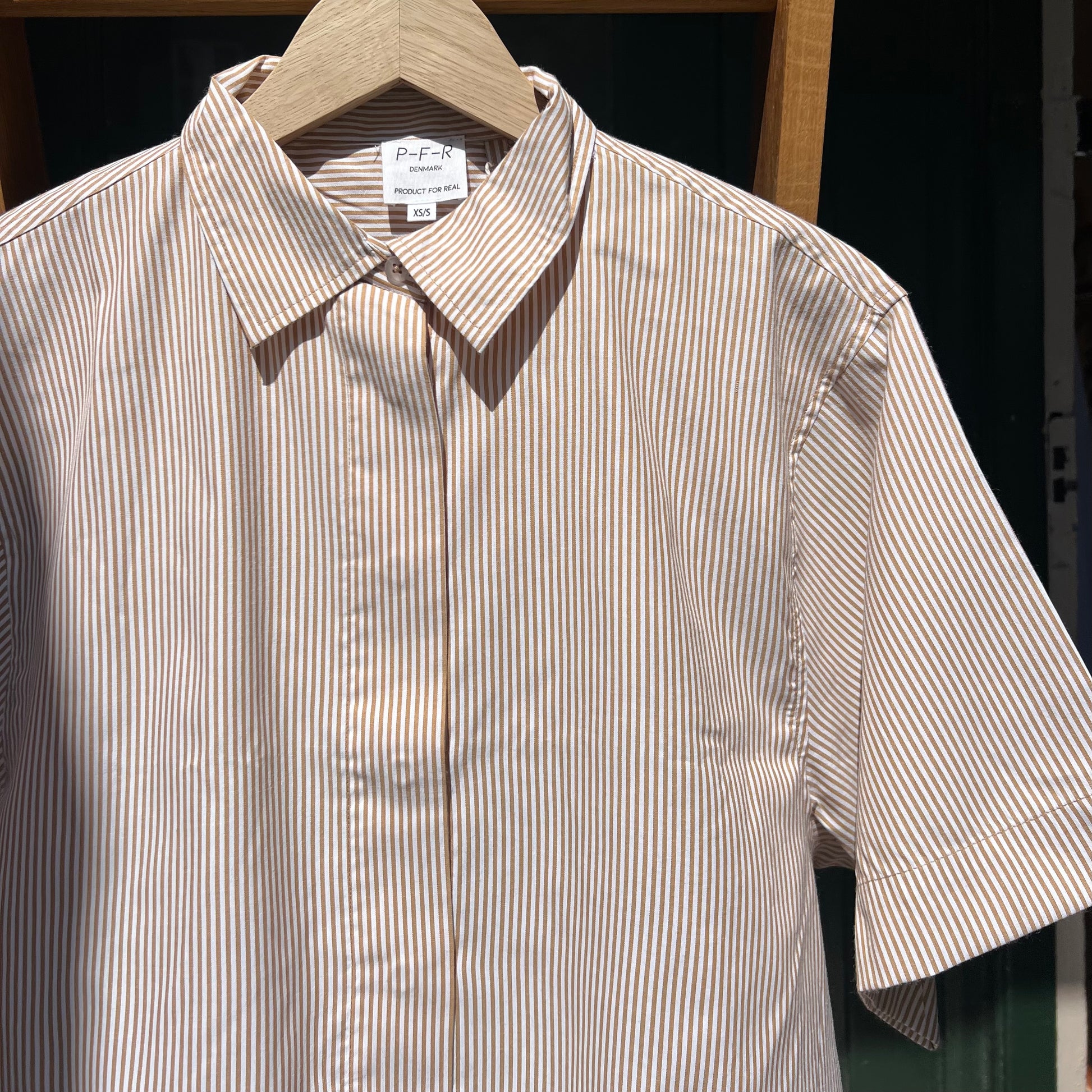 Lækker skjorte lavet i 100% bomulds poplin. Skøn strib i beige/hvid