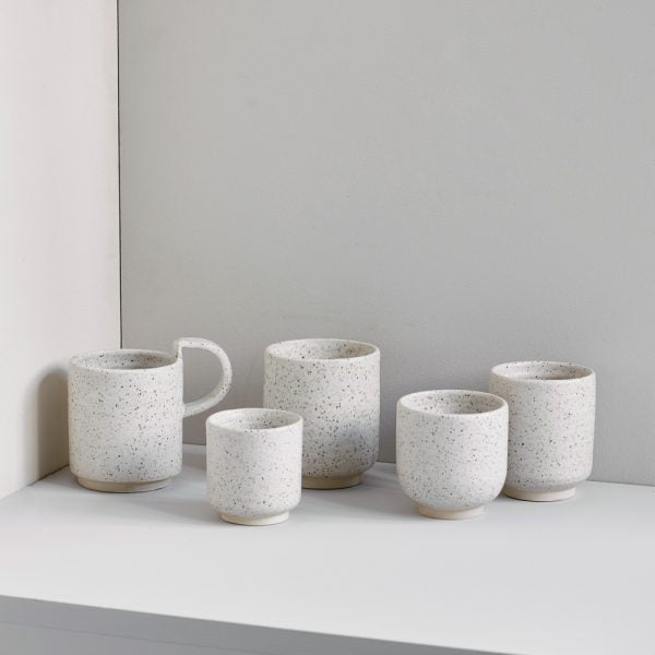 Glasurerne er inspireret af fugleæg med deres bløde farver og smukke teksturer. Glasurerne har en blød og mat tekstur, som tilføjer en sanselig følelse til overfladen. Alt sammen blandet af naturlige materialer. Fåes i æggeskals hvid, grå, rosa og støvet blå.