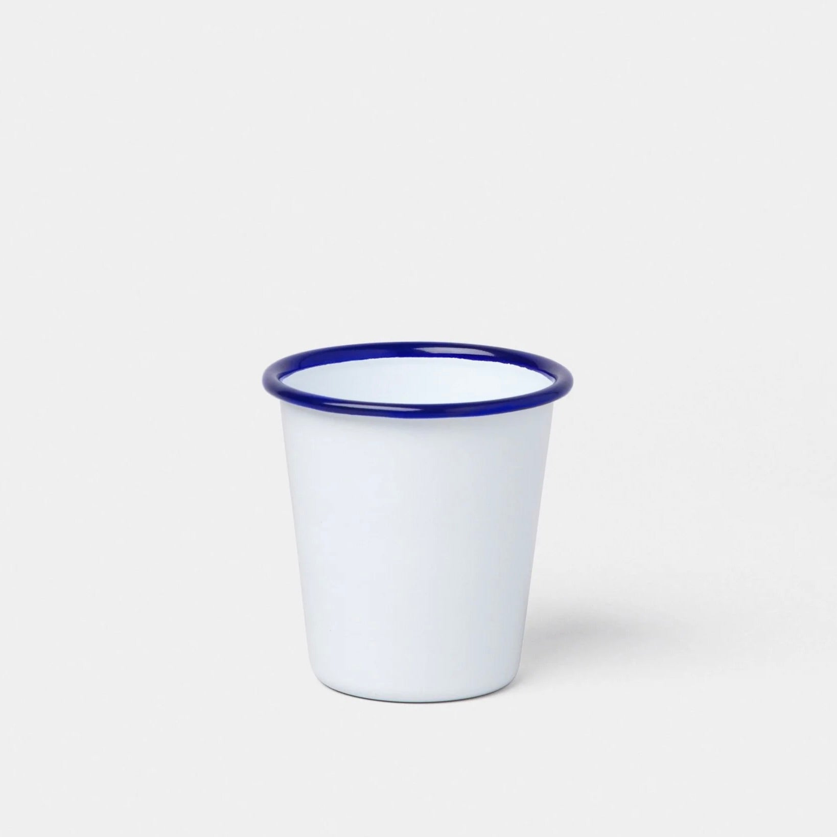 Krus 9 cm, Hvid med blå kant - Falcon Enamelware