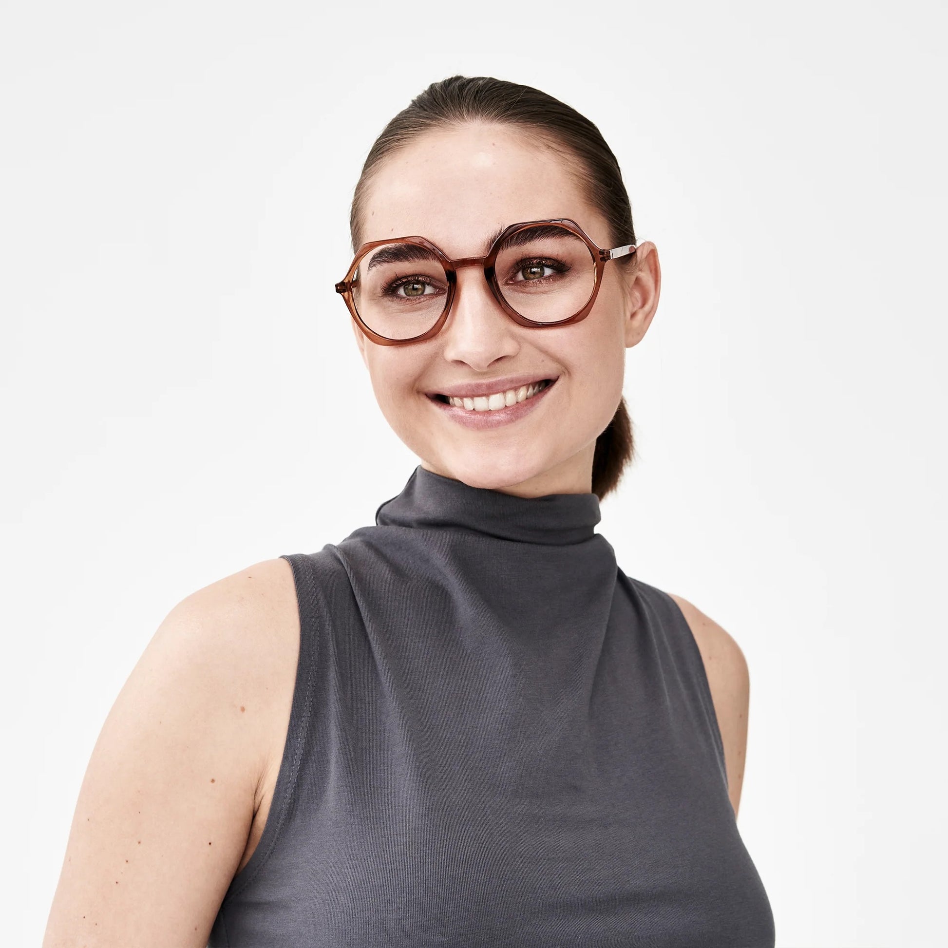 Ottekantede læsebriller med transparent olivengrønt stel. ’Edgy’ fra Have A Look et lette og elegante med et unikt og grafisk look. Stellet feminint og delikat, det passer til de fleste ansigtsformer og er let og behageligt at have på. Et godt valg, hvis du er vild med briller, der udstråler personlighed uden at stjæle alt opmærksomheden.