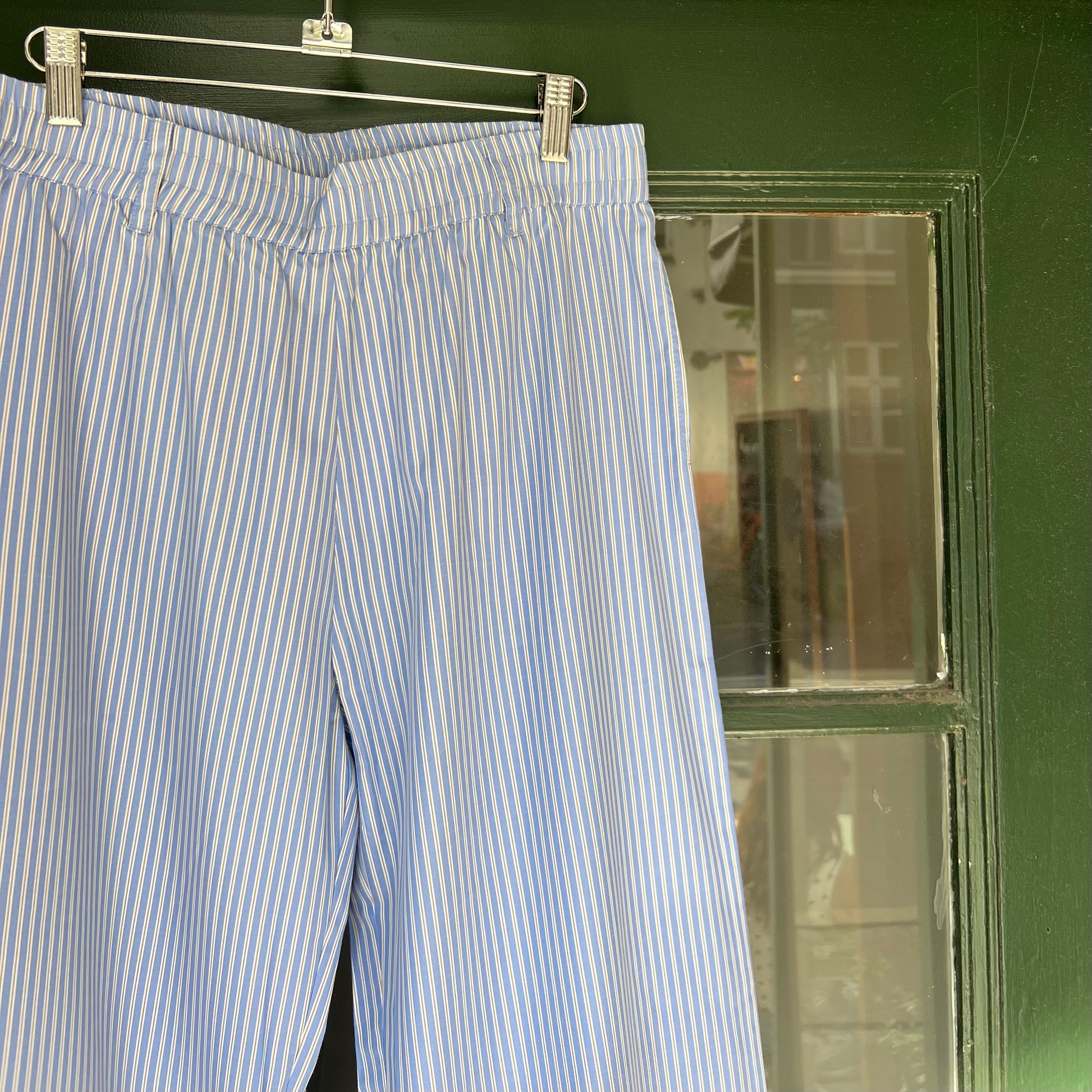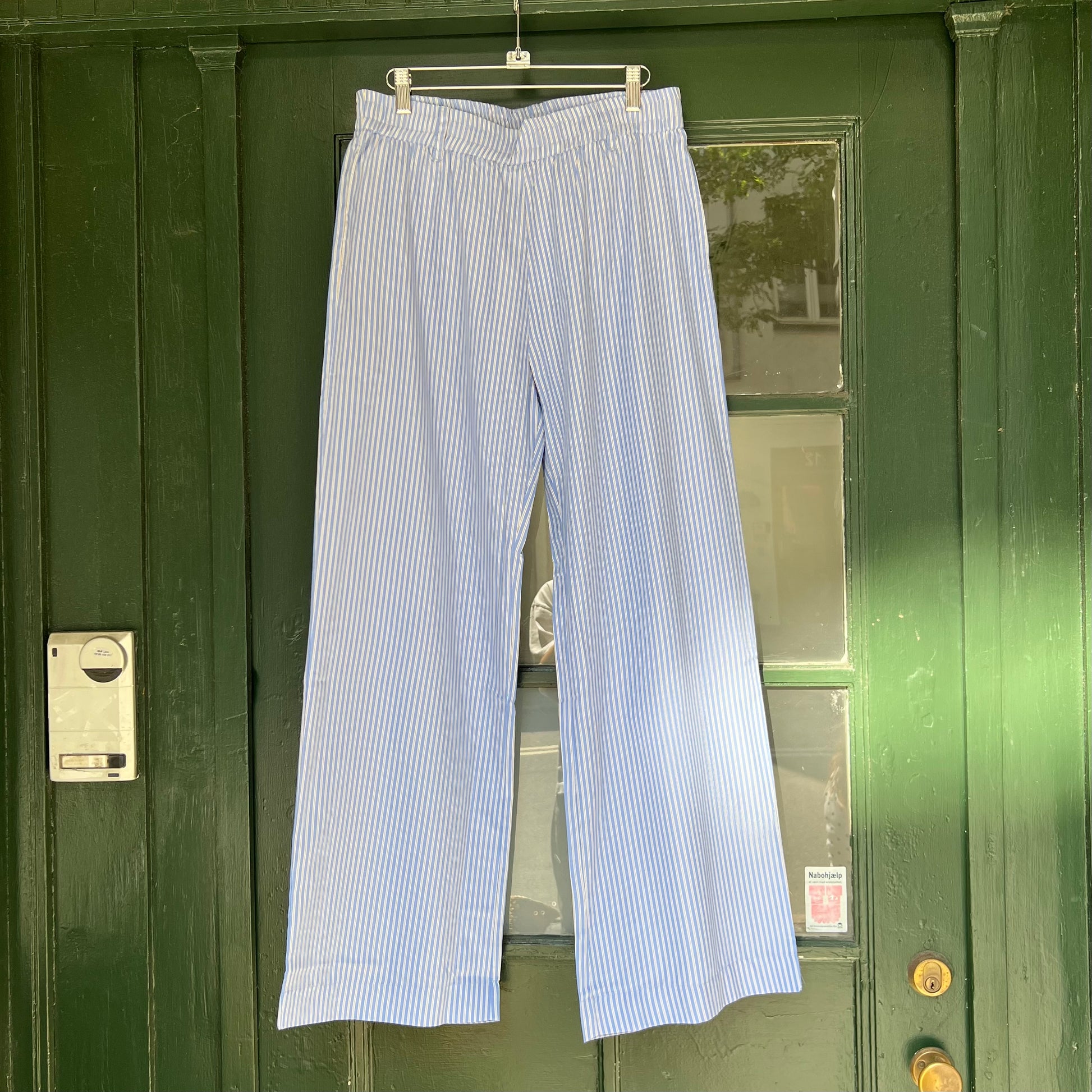 Skønne bukser lavet i 100% bomulds poplin. De har elastic i taljen og lommer i siden samt 2 baglommer