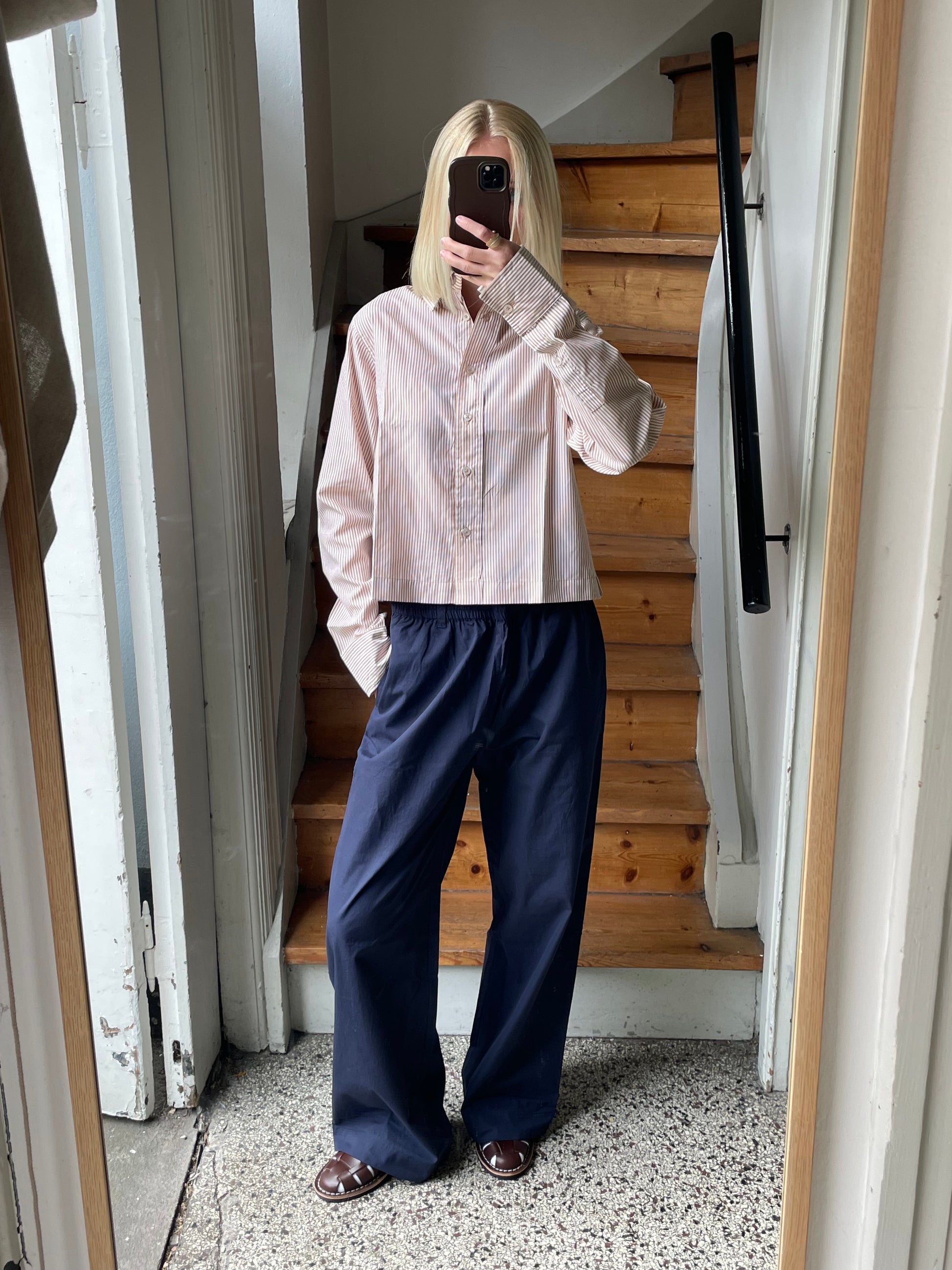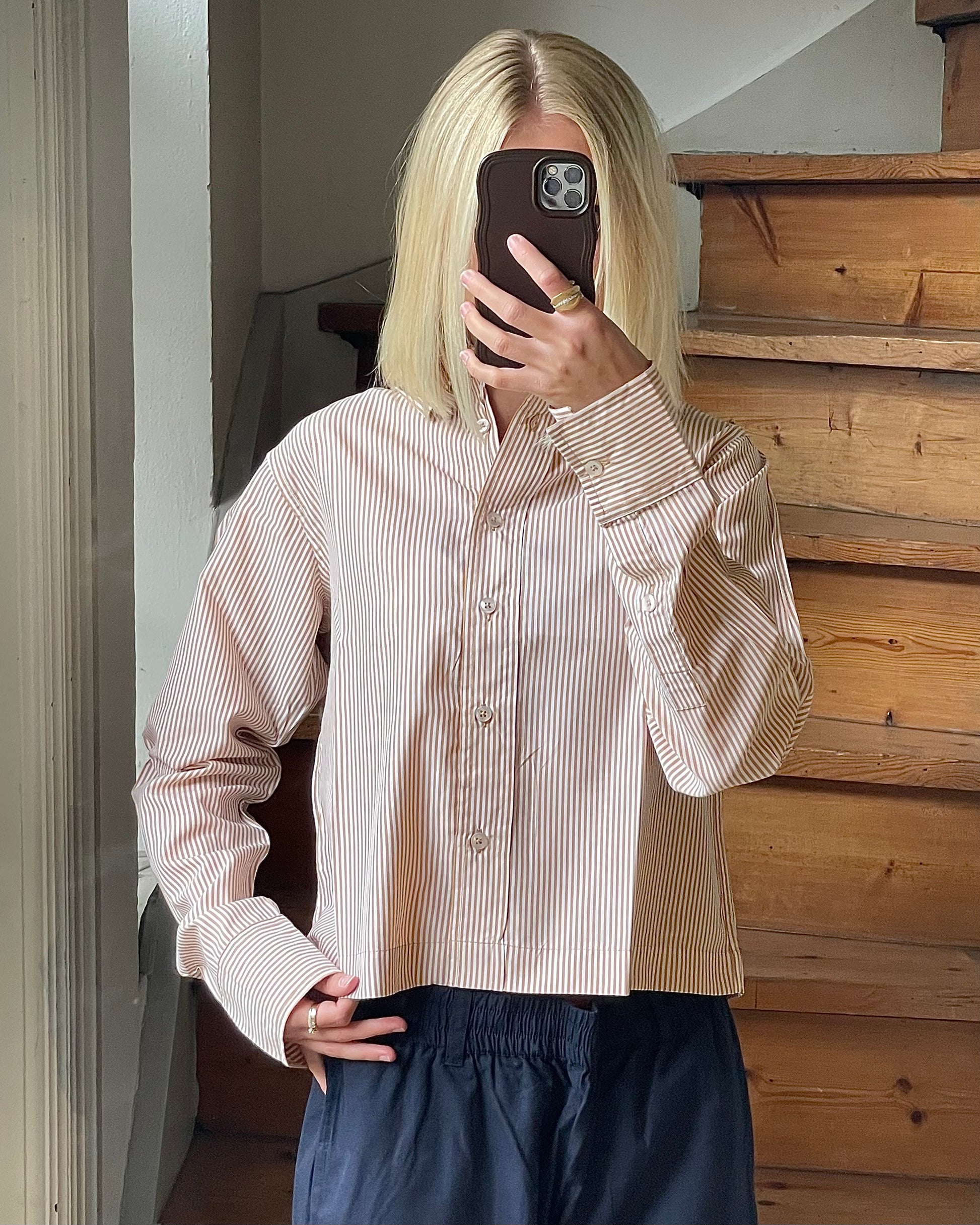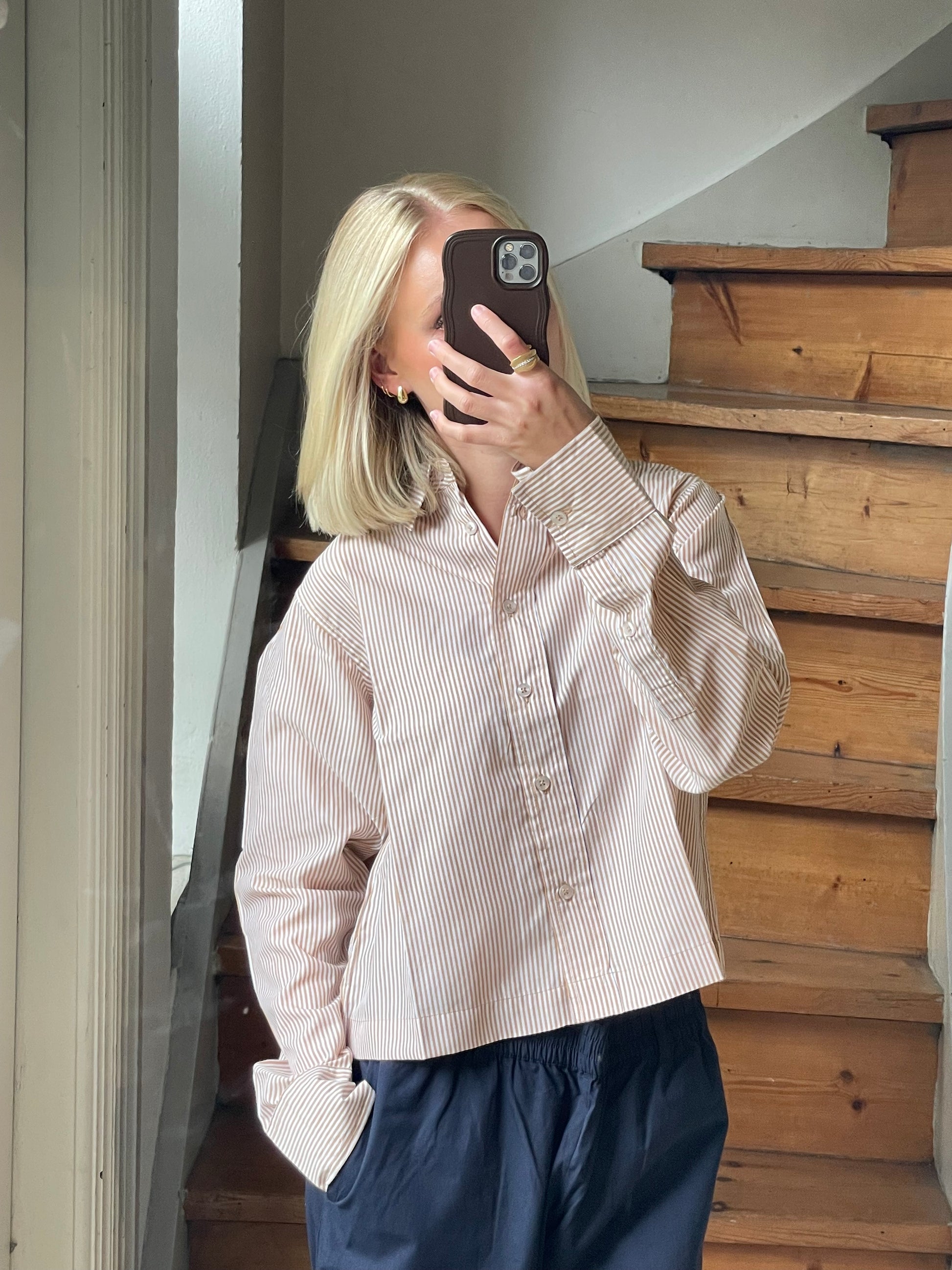 Lækker skjorte lavet i 100% bomulds poplin. Skøn strib i beige/hvid