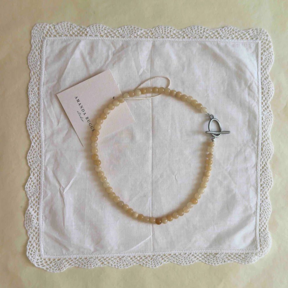 Ayla er en elegant halskæde fremstillet med oversized, højglansperler og en sølvplisseret lås.