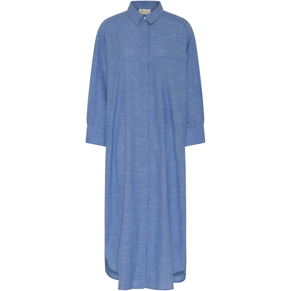 Lyon kjole er en lang udgave af vores Lyon 'herreskjorte', med krave og høje manchetter. Kjolen er gennemknappet med skjult stolpelukning. Kjolen har to sidelommer og en stor brystlomme.