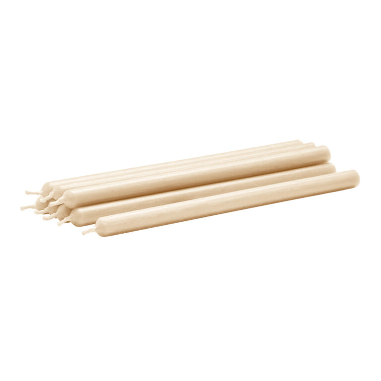 En cremet og klassisk farve. Lysene indeholder 10% bivoks som hjælper med at rense luften og til at skabe et bedre indeklima. Den tilsatte bivoks giver lysene en naturlig honninglignende duft. Lysene er længere end vores almindelige lys som giver ekstra brændetid og et mere elegant look i lysestagen.