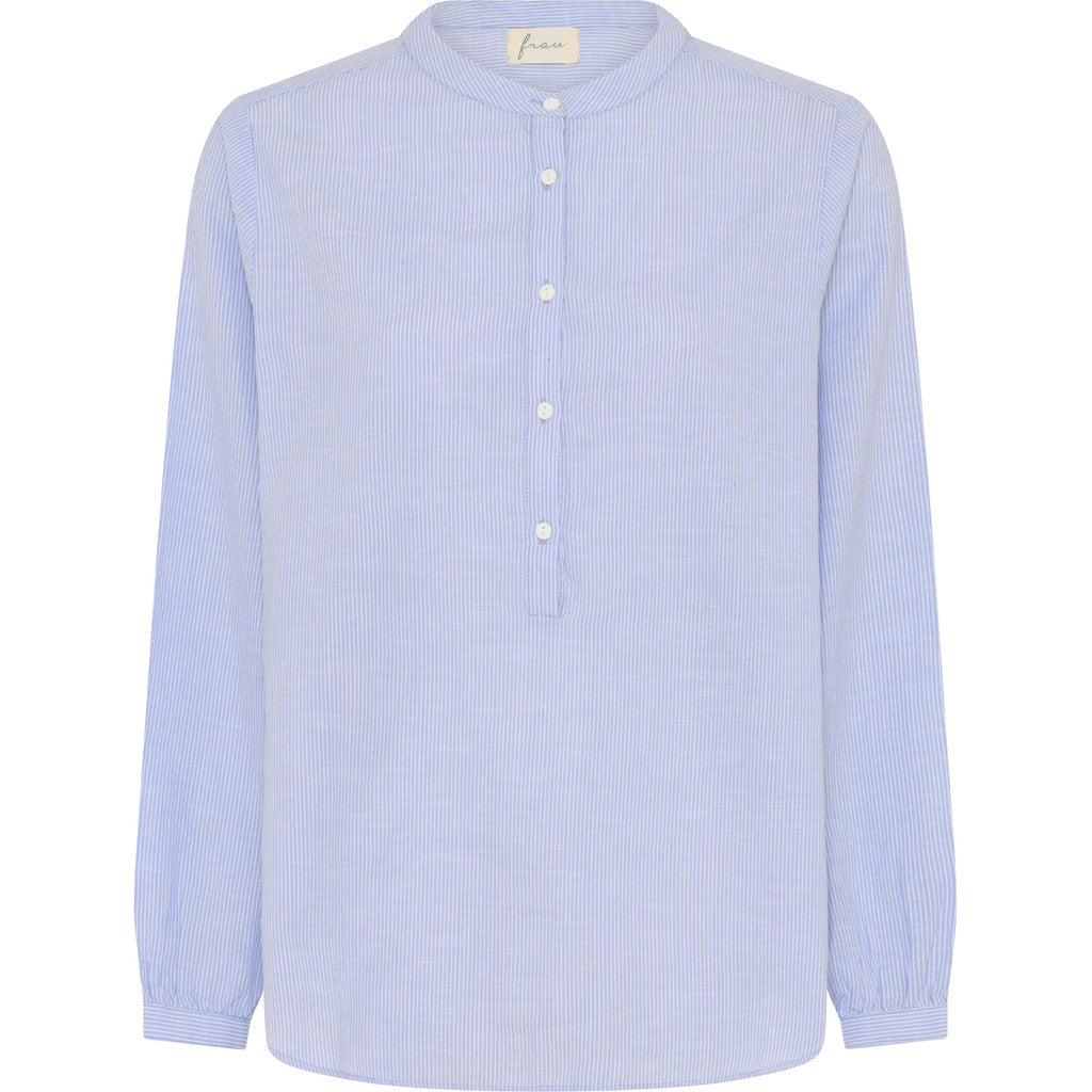Langærmet skjorte i hvid med stolpelukning fra det danske mærke Frau.