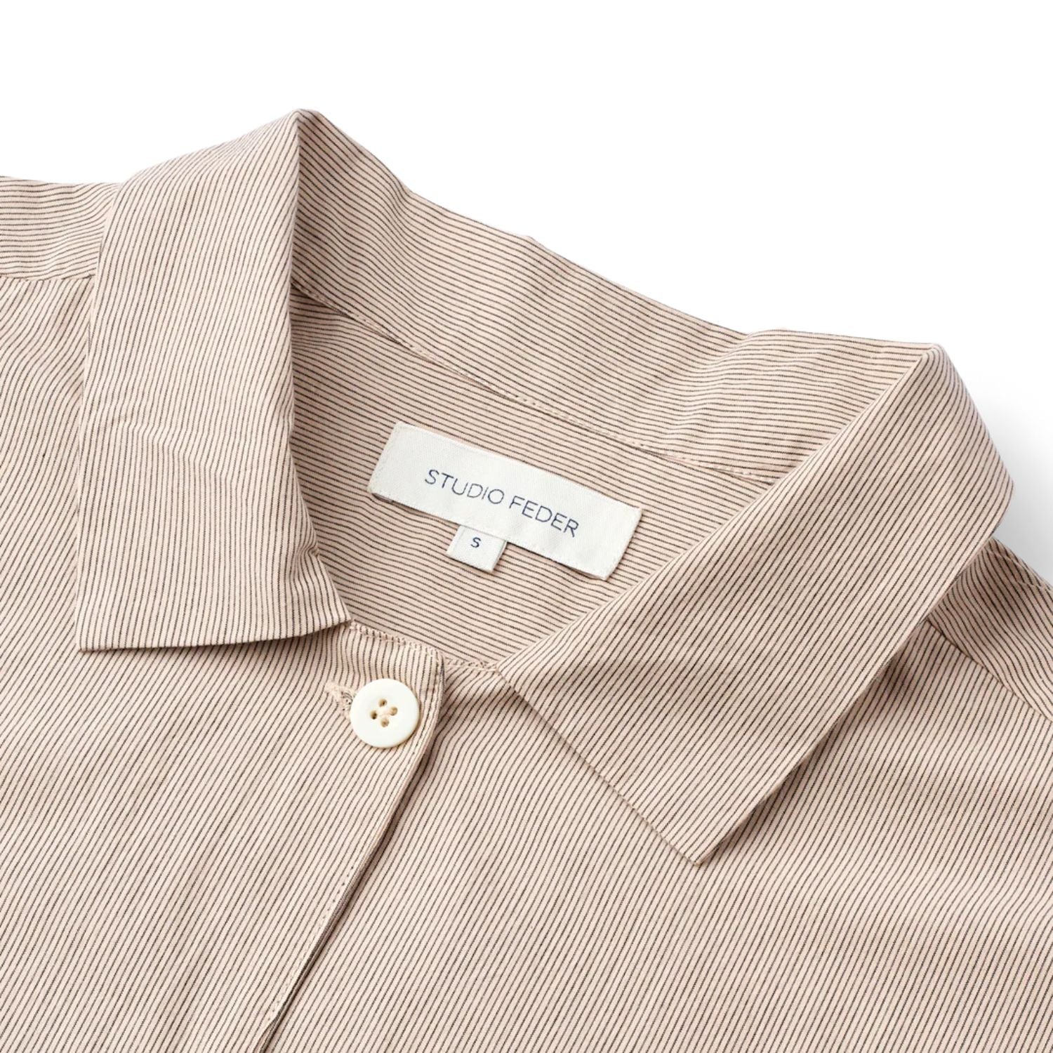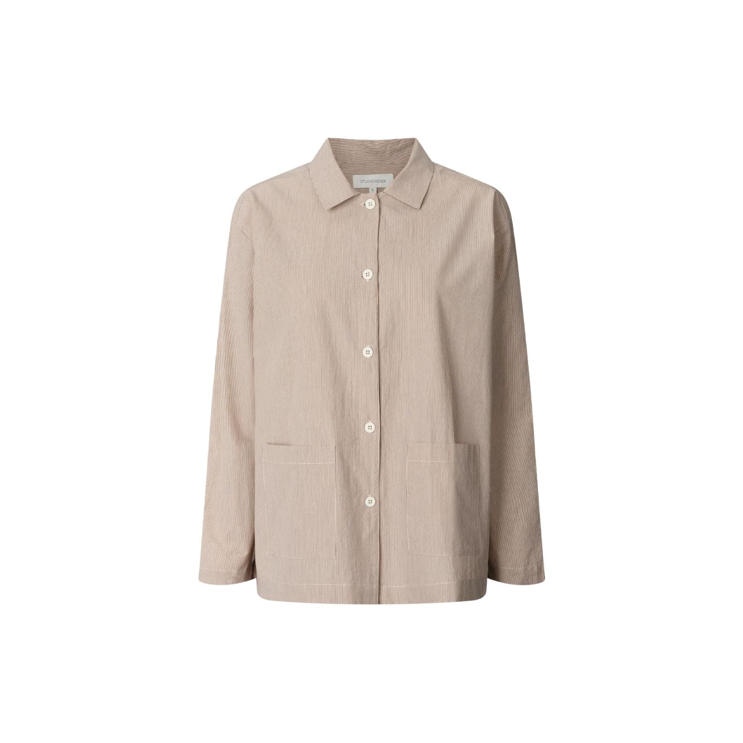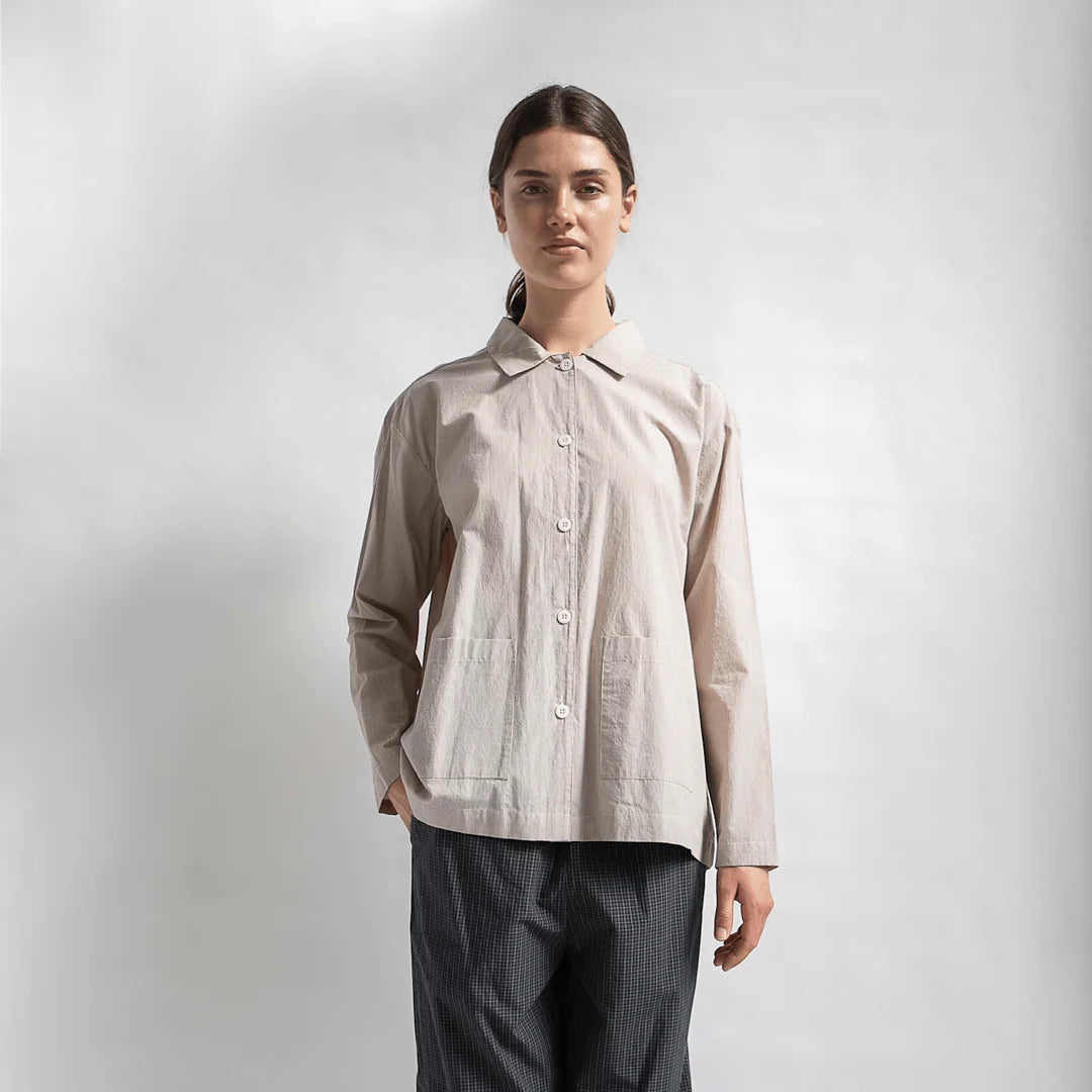 Afslappet skjorte i 100% økologisk bomuld med lille krave samt knapper fortil. Et løst oversized fit med to forlommer. Brug den som den er eller med en strik udover på de køligere dage.