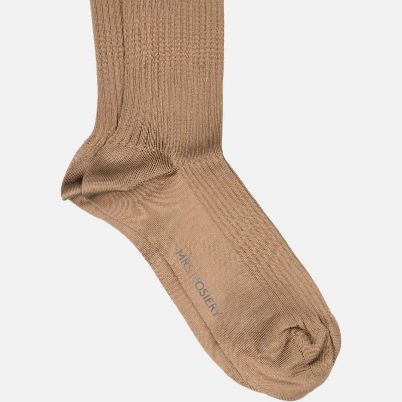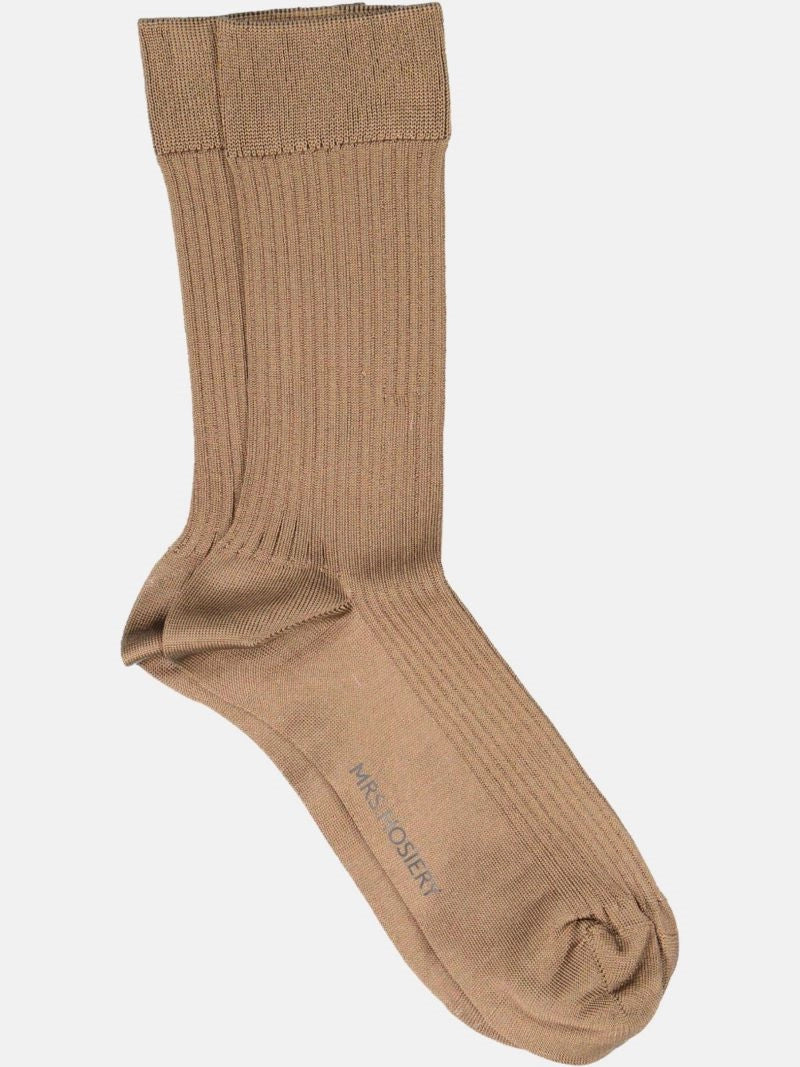Mrs. Silky's fine ribbede sokker i farven pigeon, lavet med slanke og skinnende regenererede fibre