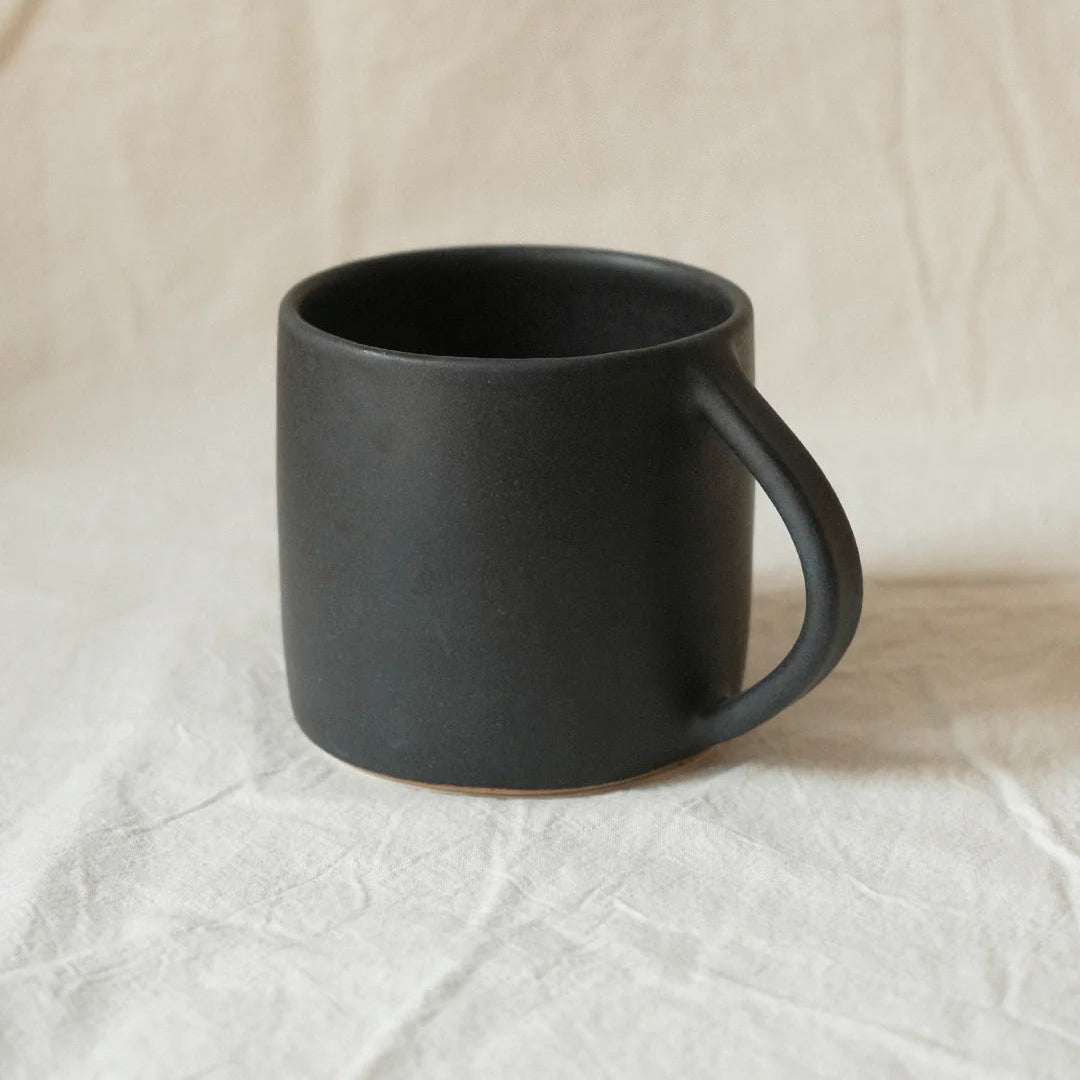 Smoke-kollektionen er fremstillet af lyst ler og glaseret med en markant, mat sort finish. I sollys kan glasuren afsløre subtile blå nuancer, der tilfører dybde til den rige sorte farve. Kontrasten mellem den glatte, mørke glasur og den lyse, rå ler-kant i bunden skaber en smuk effekt med en lys brun polering, der fremhæver lerets naturlige struktur.