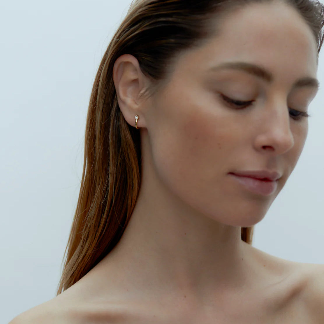 Et par øreringe i 925 sterlingsølv med en smuk, svævende sten placeret øverst. Disse øreringe udstråler enkelhed og elegance.