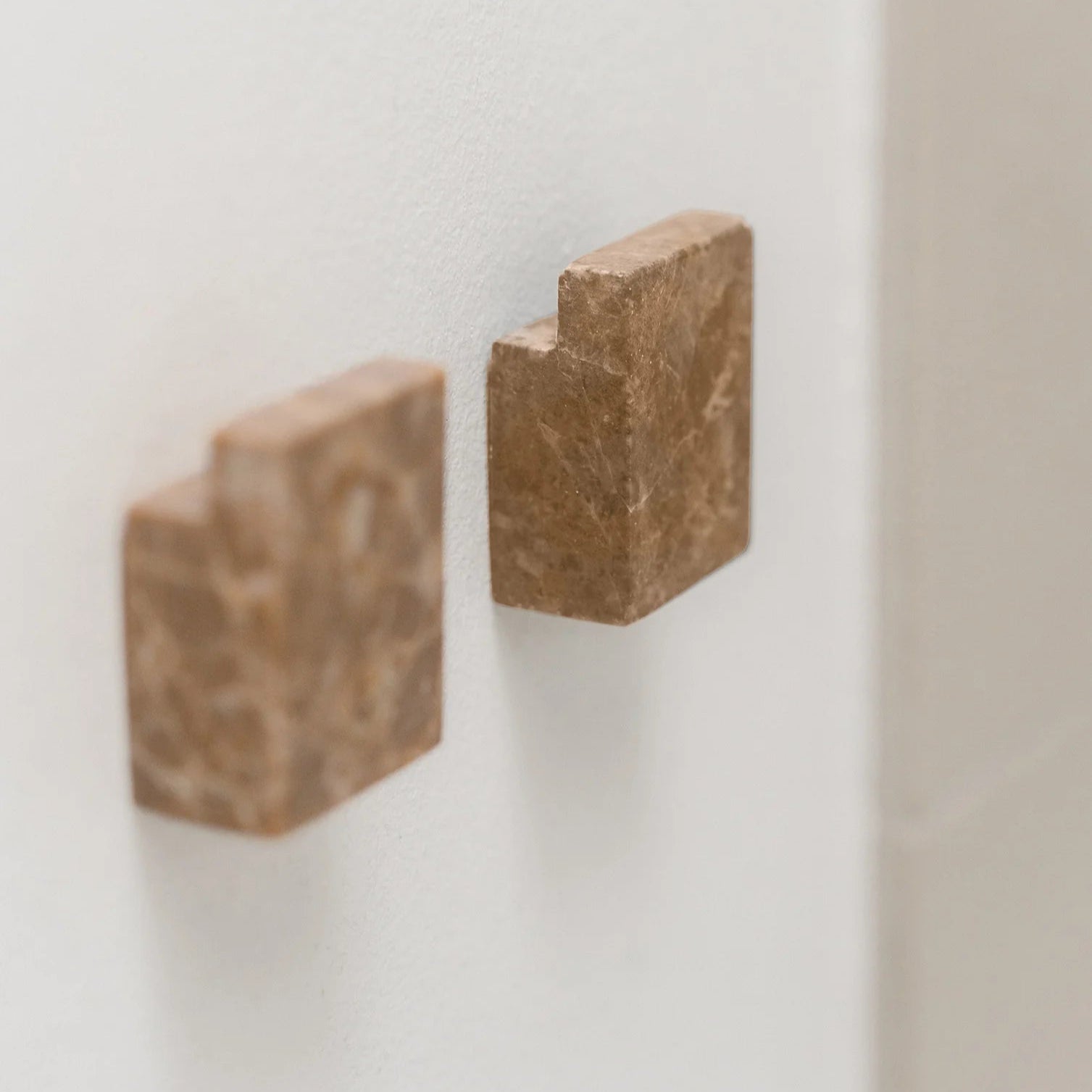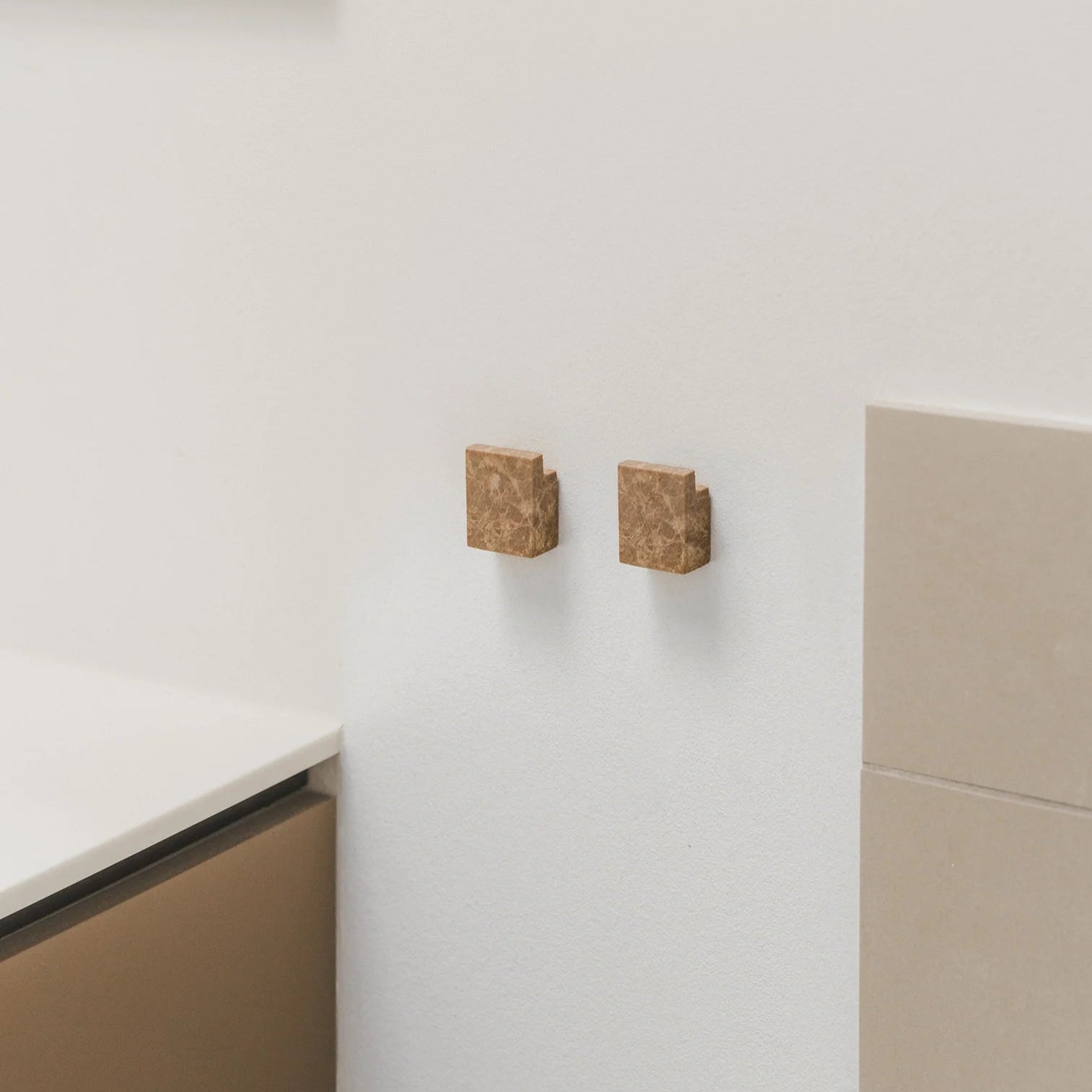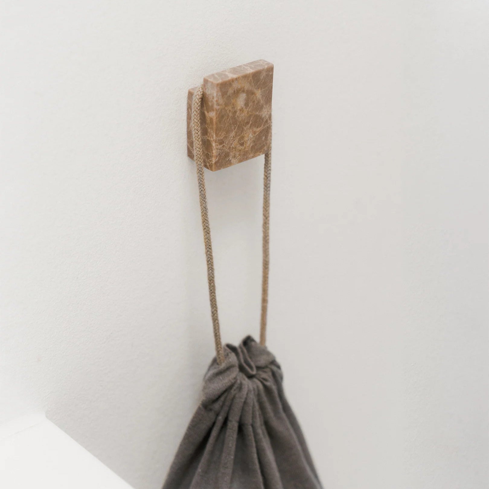 Øster er en lille serie af firkantede knager og greb i natursten. Det simple design sikrer en god funktionalitet, der passer ind i langt de fleste hjem. Brug dem på badeværelset til håndklæder, i køkkenet til viskestykker, eller i entréen til overtøjet.