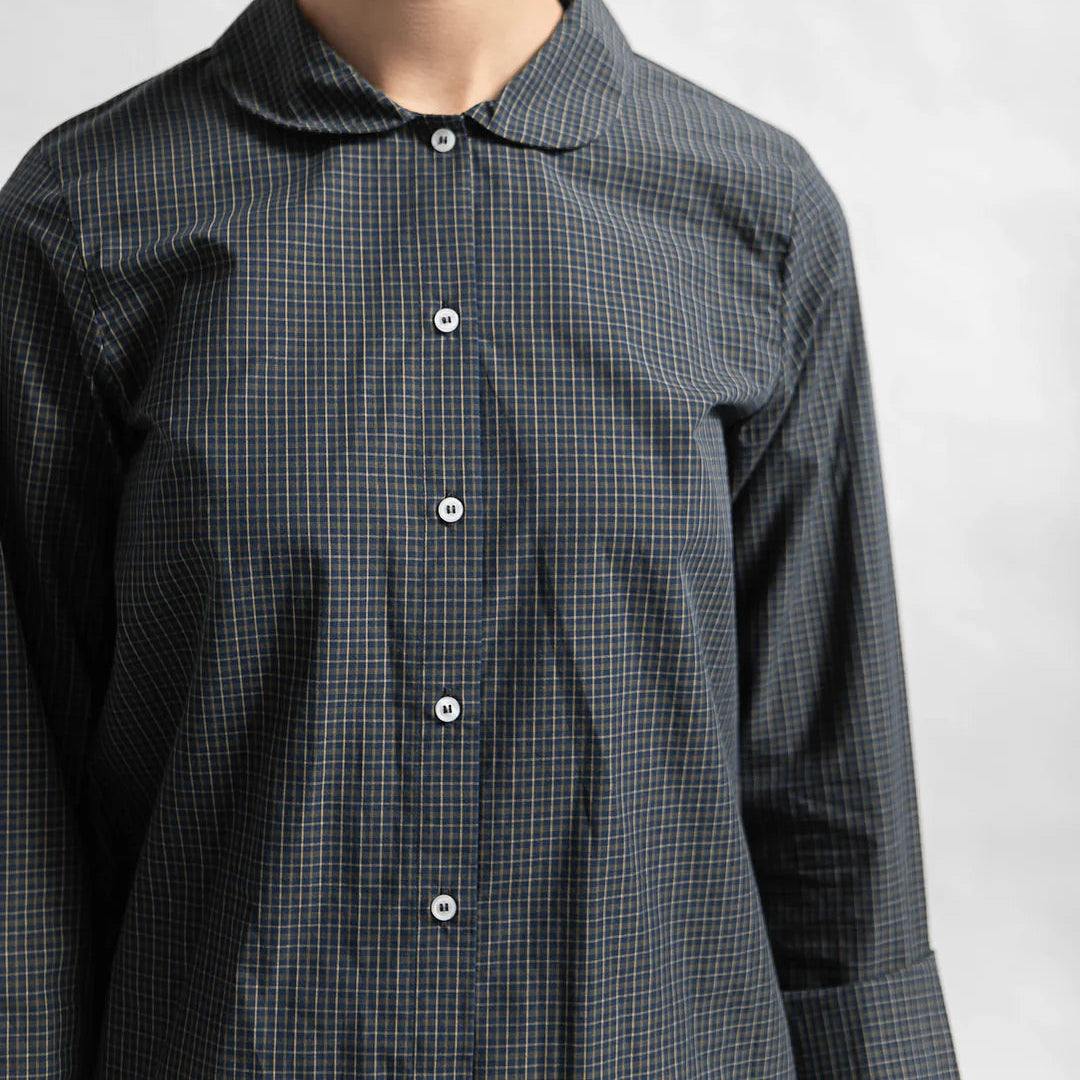 Klassisk, lækker og blød skjorte i økologisk bomuld. Petra skjorten har en gennemknappet stolpelukning, store knapper og en fin, lille rund krave, der giver et feminint touch. Alle indvendige syninger er med franske sømme for en delikat og luksuriøs finish.