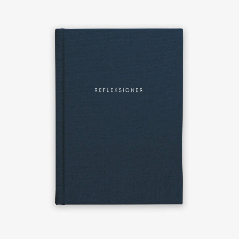Refleksionsdagbogen er en hardcover, stofindbundet notesbog i en smuk mørkeblå farve. Det lille og lette udseende passer i en skuldertaske og kan derfor tages med uden hverken at fylde eller tynge. Det enkle design rummer spørgsmål, der veksler, og linjer til at besvare dem på.