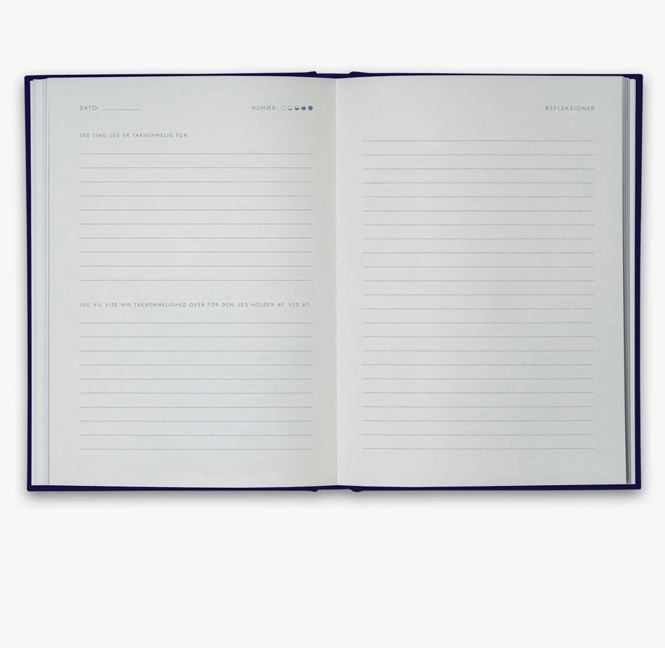 er en guidet notesbog, hvor du nemt kan tjekke ind med dig selv dagligt. Notesbogen giver dig plads til at udforske og reflektere over dine tanker og følelser for dagen, dine hensigter for morgendagen og din generelle trivsel og velbefindende.