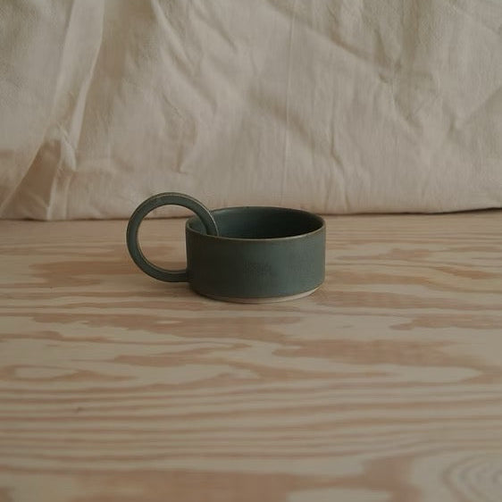 RO-kaffekoppen er en håndlavet stentøjskop, der kendetegnes af et skulpturelt, cirkulært hank. Hvert stykke er omhyggeligt drejet i hånden og omfavner de subtile variationer, der gør hvert krus unikt.