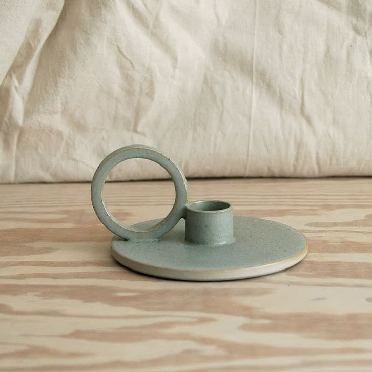 RO lysestage er et moderne bud på den klassiske kammerstage. Skab et rum af lys og nostalgi i dit hjem. Håndlavet lysestage i stentøj, med cirkulært hank.
