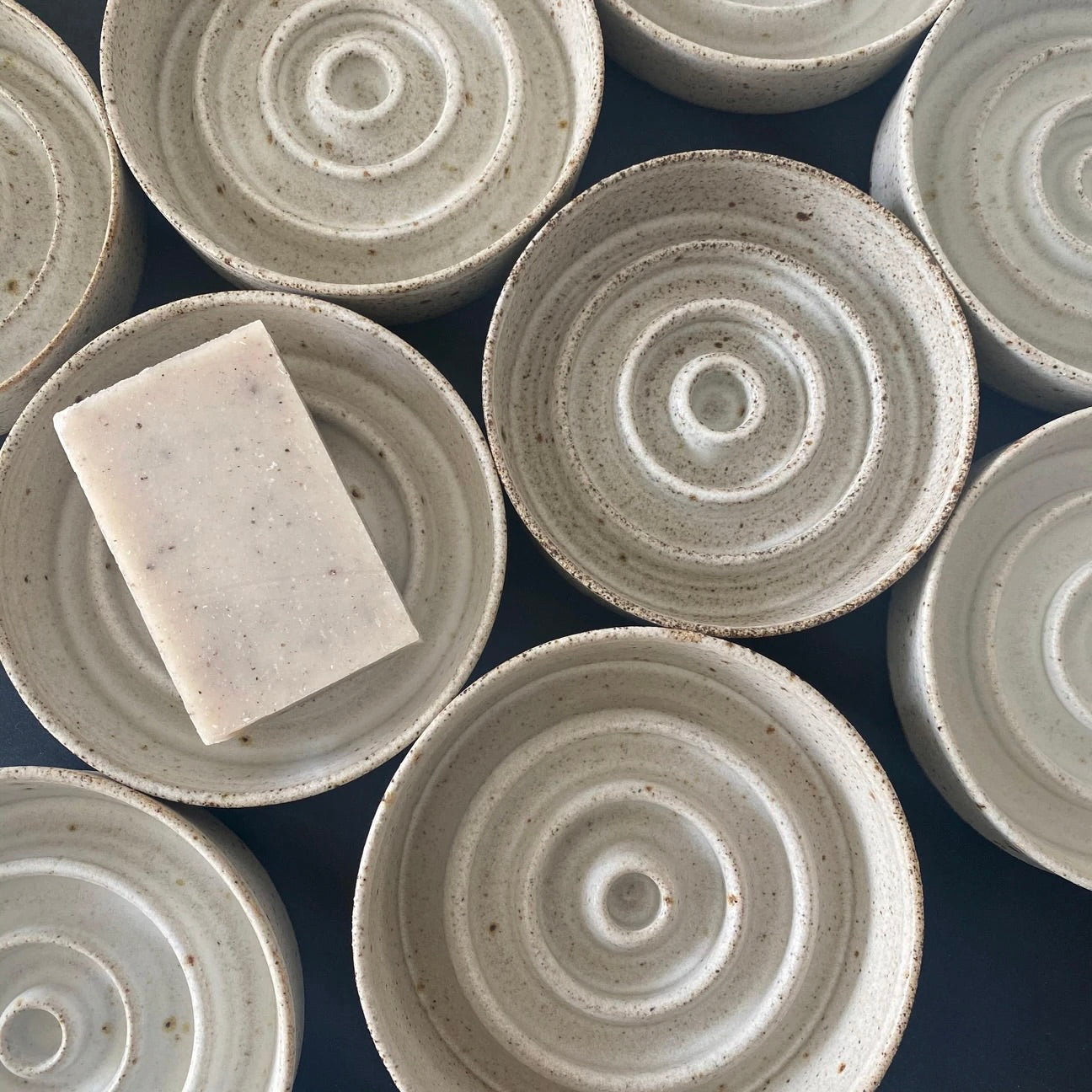 Sæbeskål/ Drypfad. Håndlavet af plettet stentøjsler. Designet til hverdagsbrug.