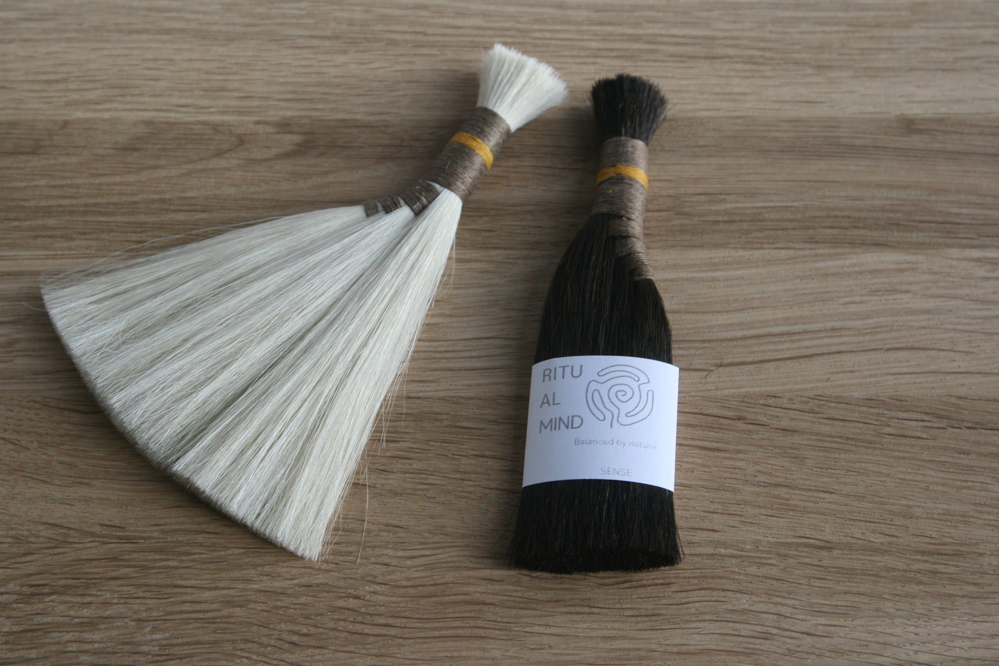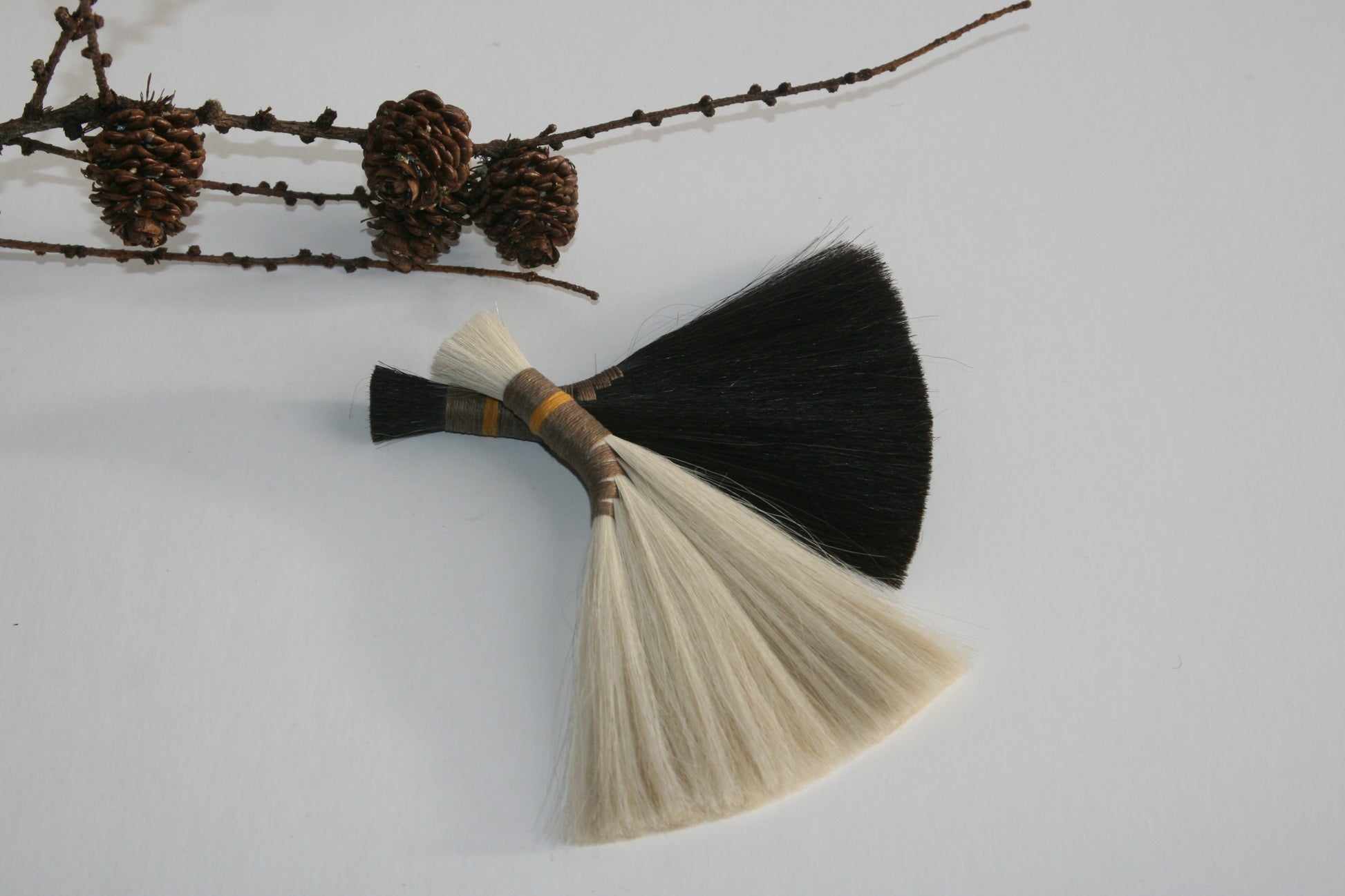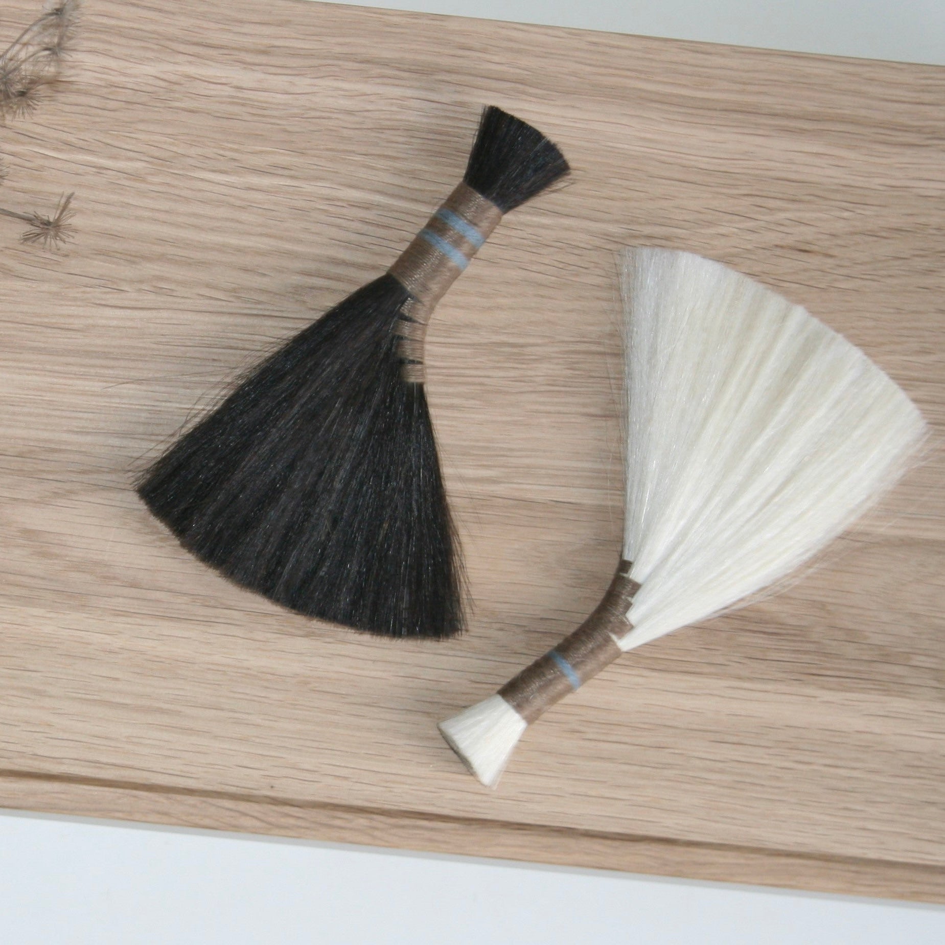 Sansebørste af de blødeste gedehår bundet med hørtråd.